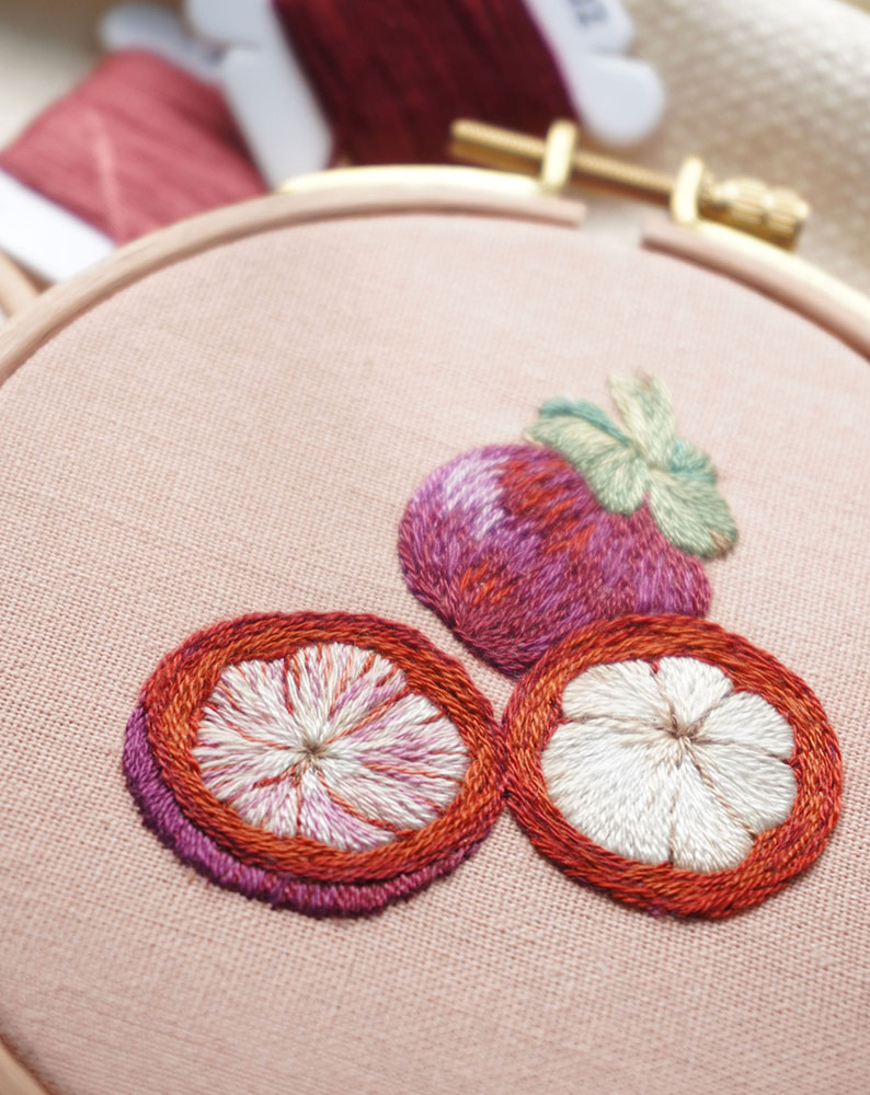 2 cách phối màu và thêu quả măng cụt với mũi đâm xô (có mẫu in)