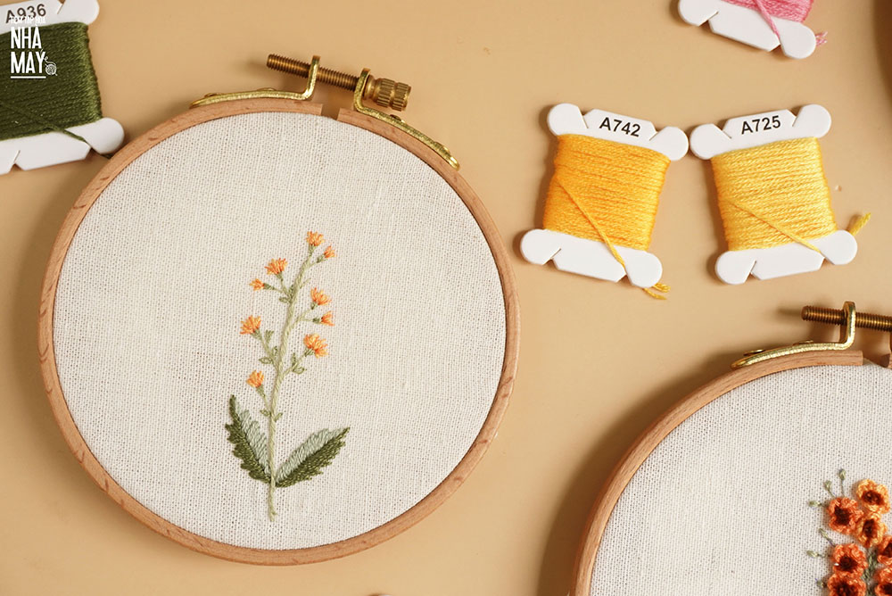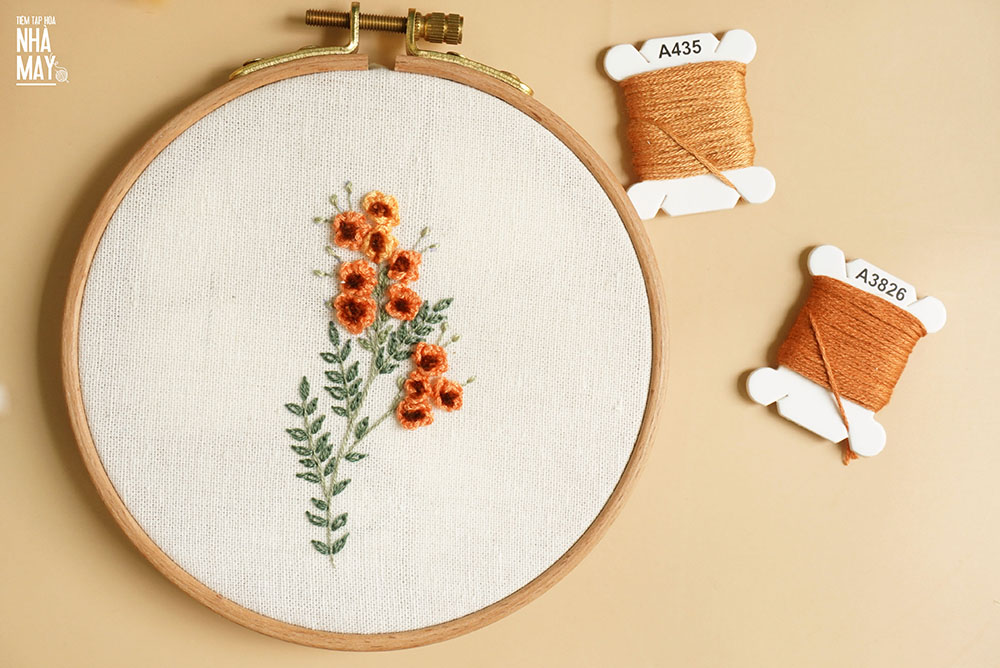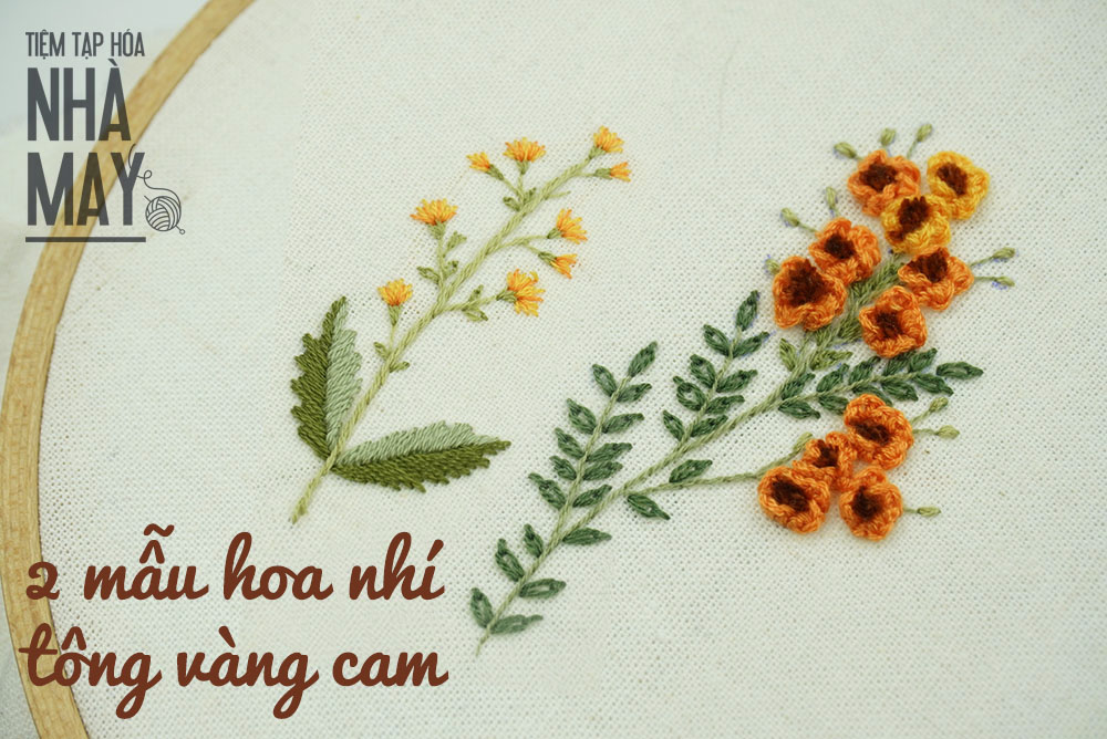 Bạn chỉ cần thêu thôi, việc phối màu cứ để Tiệm lo. Lại là 2 loại hoa nhí nhưng lần này là tông vàng cam cho những ai thích gam màu rực rỡ tươi sáng nha.