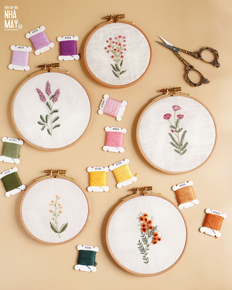 - Kim thêu: bạn xem các loại kim thêu tại đây nhé https://tiemtaphoanhamay.vn/kim-theu