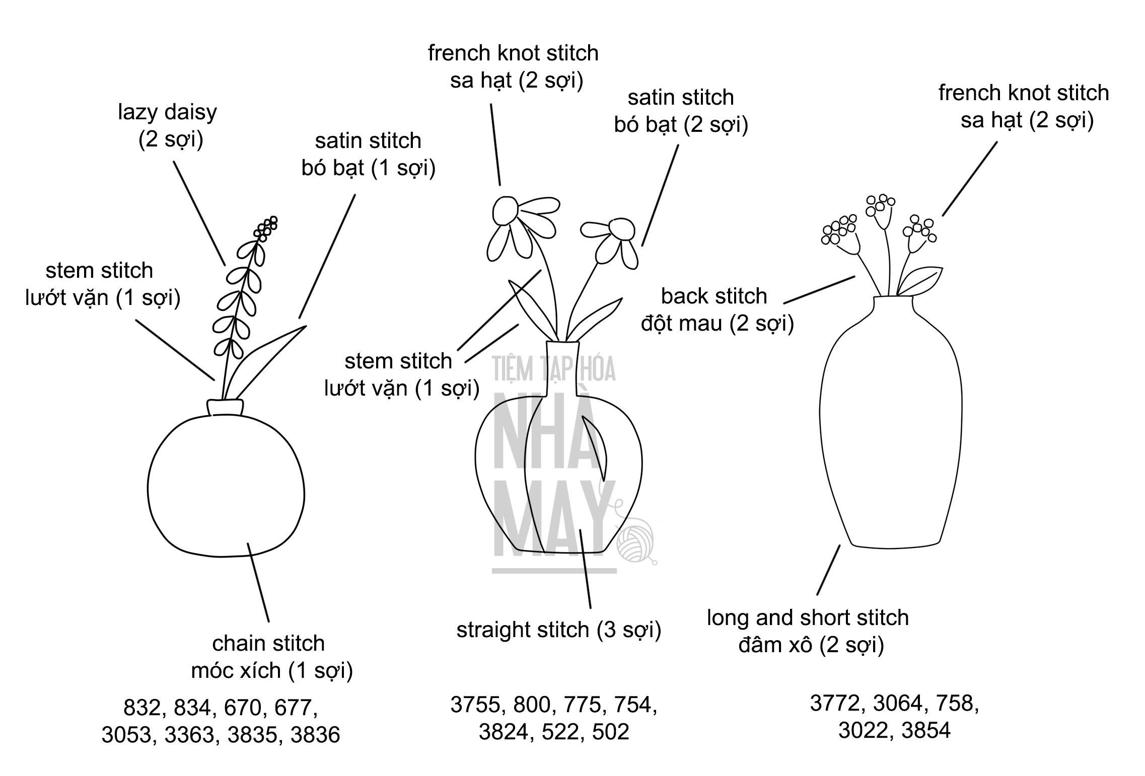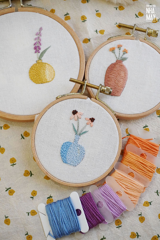 Thêu bình hoa đơn giản thôi nhưng kết hợp mũi thêu và màu sắc một chút là ra nhiều kiểu khác nhau. Mẫu thêu dành cho người mới bắt đầu nếu muốn tập tành thêu nha.