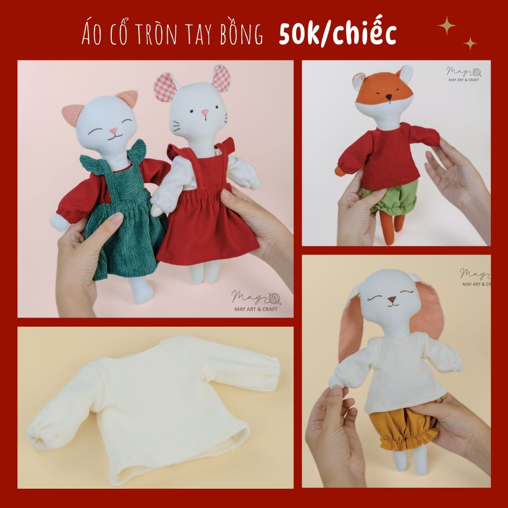 Áo cổ tròn tay bồng là sản phẩm nằm trong bộ sưu tập trang phục thú bông/búp bê vải của Tiệm tạp hoá nhà May. Chất liệu vải an toàn, đường may chắc chắn, sản phẩm thường được mua kèm với các loại phôi thú bông của Tiệm để trở thành món quà hoàn hảo cho các bạn nhỏ trải nghiệm thay đồ, phối đồ cho thú bông theo sở thích và phong cách cá nhân vô cùng độc đáo, thú vị.