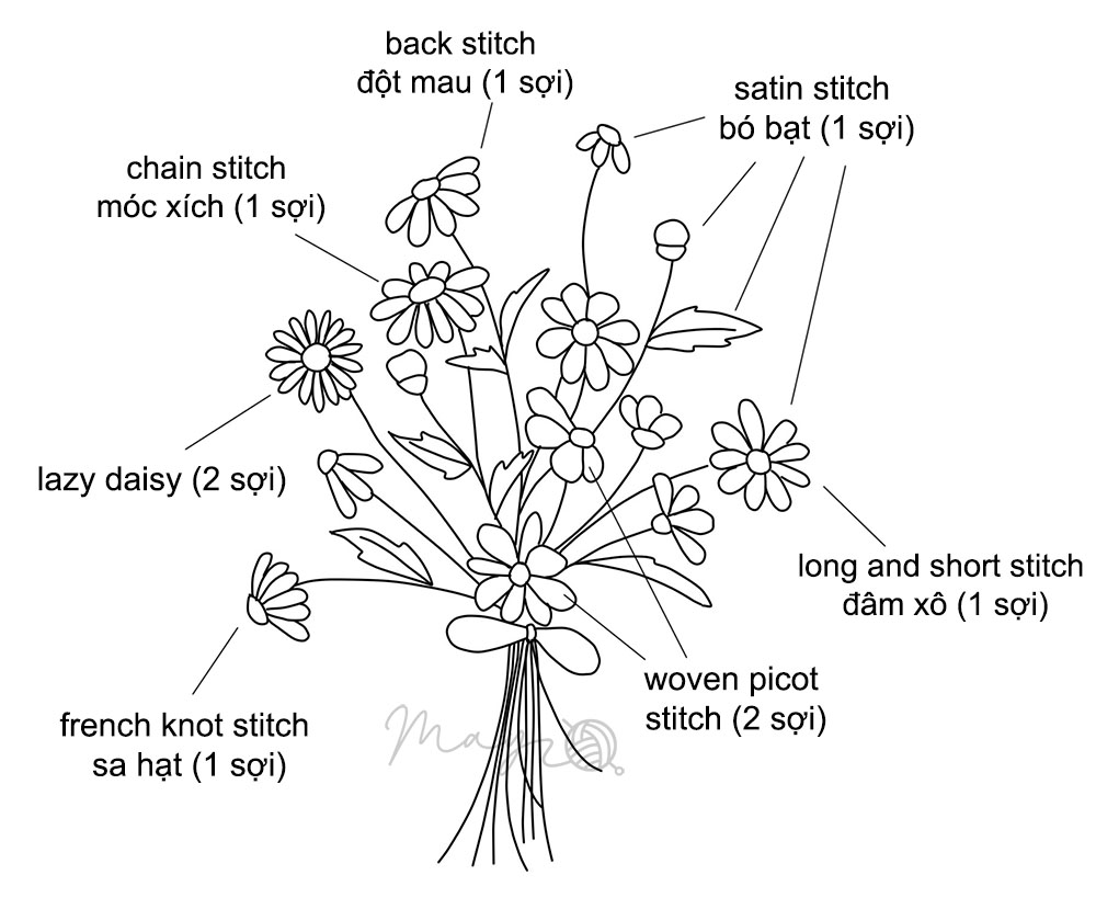 Bài 13: Hướng dẫn các cách thêu cúc họa mi (có mẫu in)