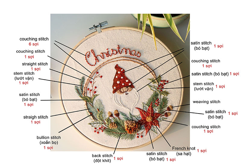 Nguyên liệu Tiệm dùng cho mũi thêu Straight stitch và couching stitch: