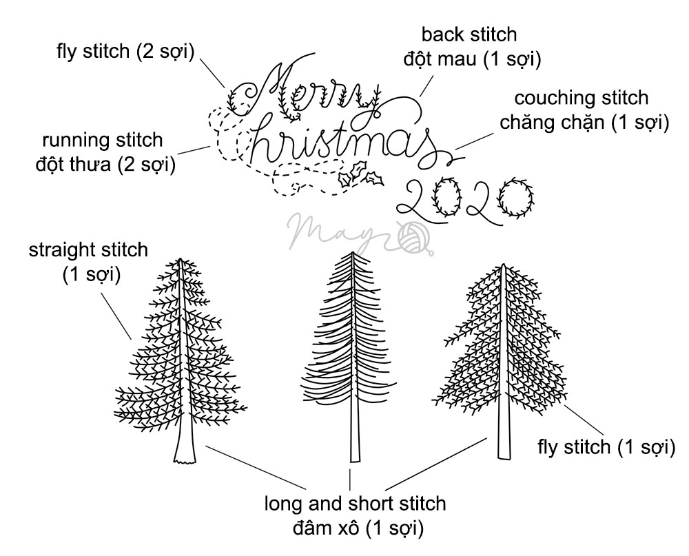 Bài 20: 3 cách thêu cây thông đơn giản (có mẫu in)