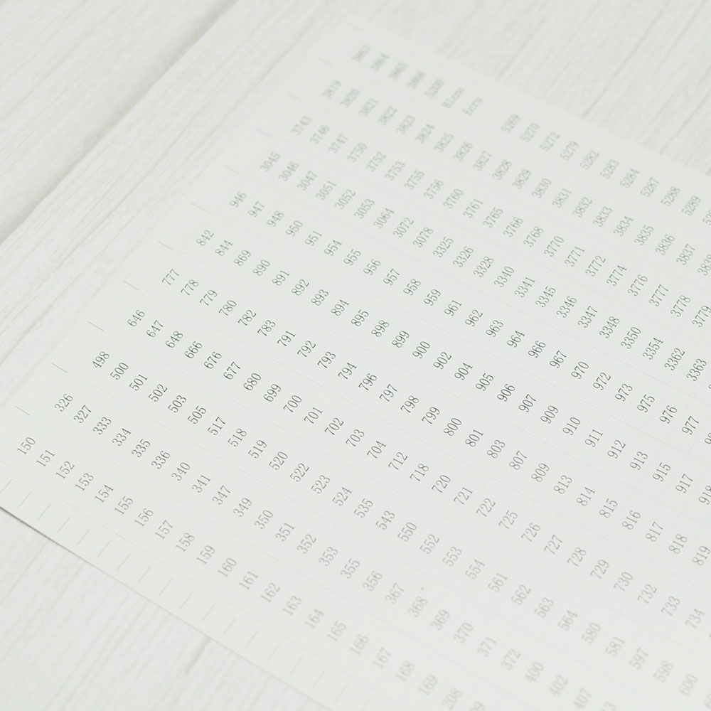 Bảng nhãn dán mã màu chỉ DMC gồm 459 miếng dán in sẵn mã màu cơ bản theo bảng màu DMC, kích thước 1 miếng dán là 1.5cm x 0.6cm.