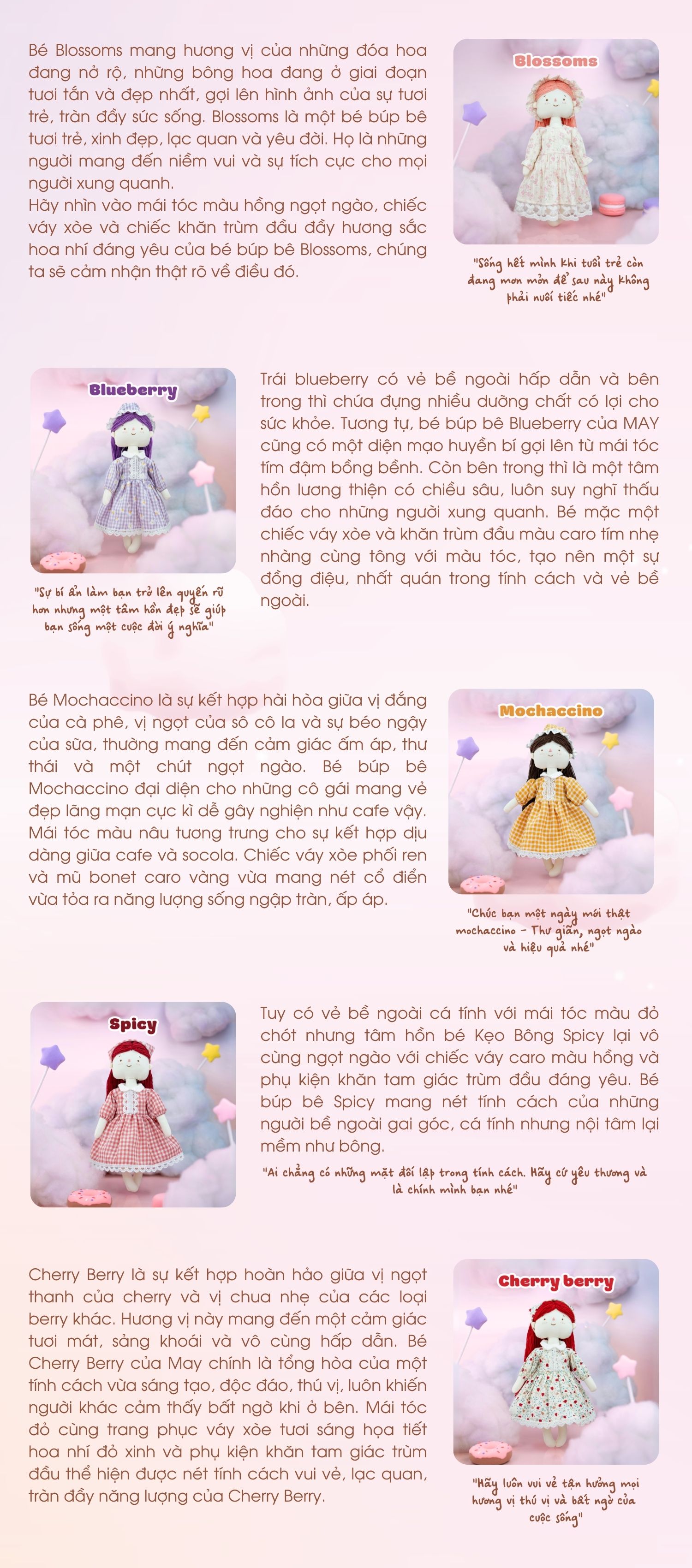 1. Phôi búp bê vải của May được làm từ vải kaki nên có thể sẽ không quá mềm như các loại búp bê vải khác mà sẽ có độ căng nhất định và cảm giác mịn màng khi chạm vào.