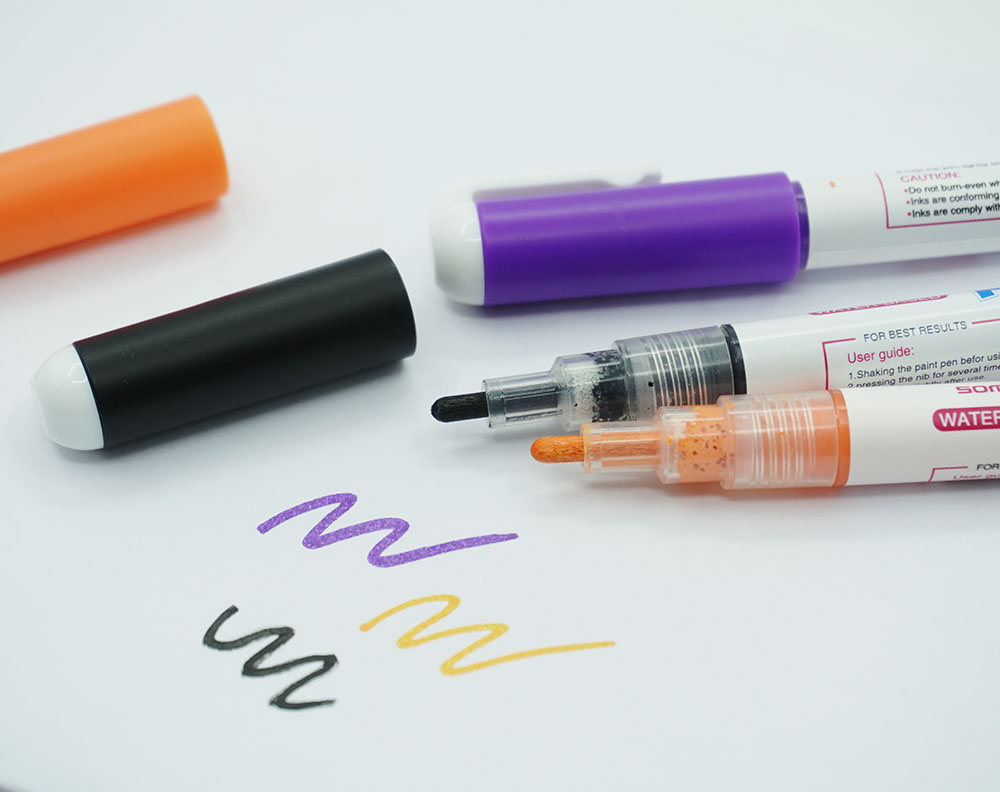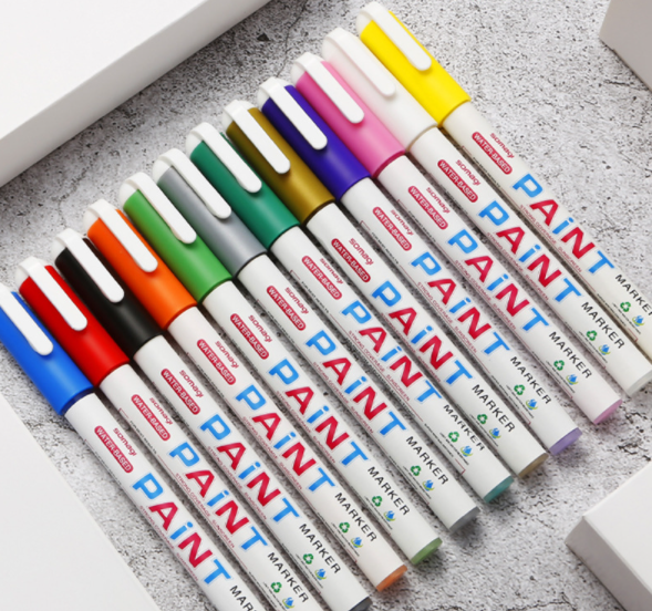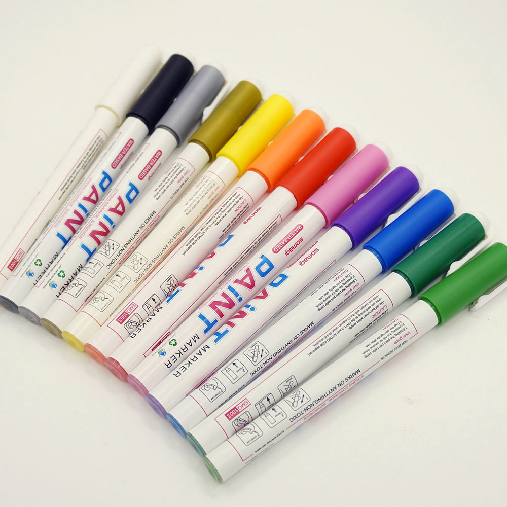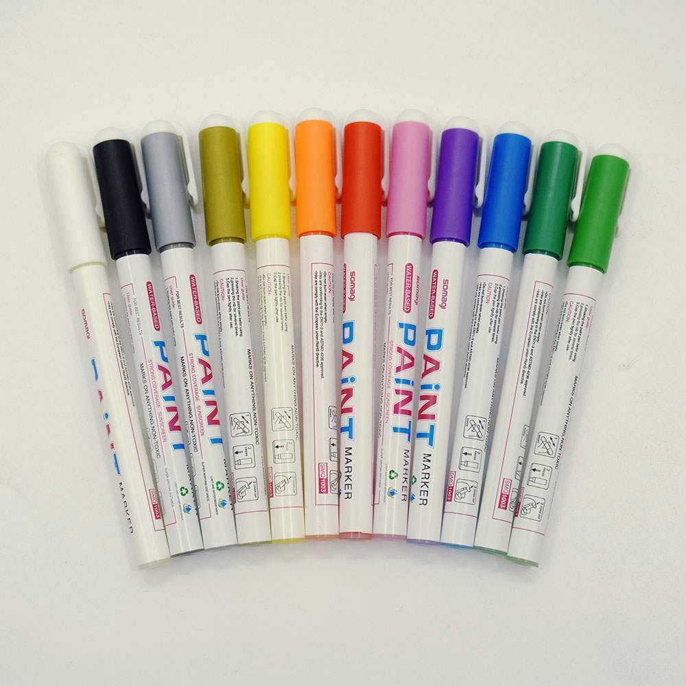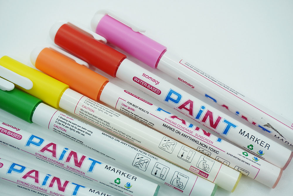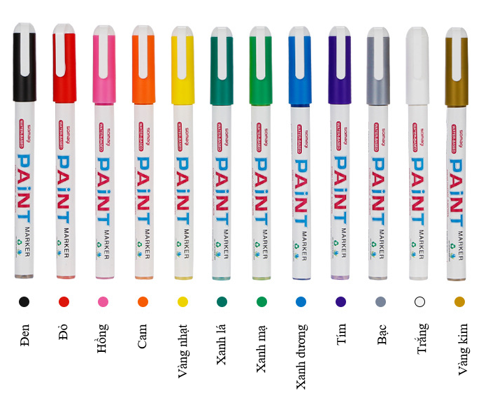 Bút màu paint marker gốc nước, là loại bút không trôi có thể vẽ trên các chất liệu đa dạng như giấy, nhựa co nhiệt, vải... độ bền màu cao.