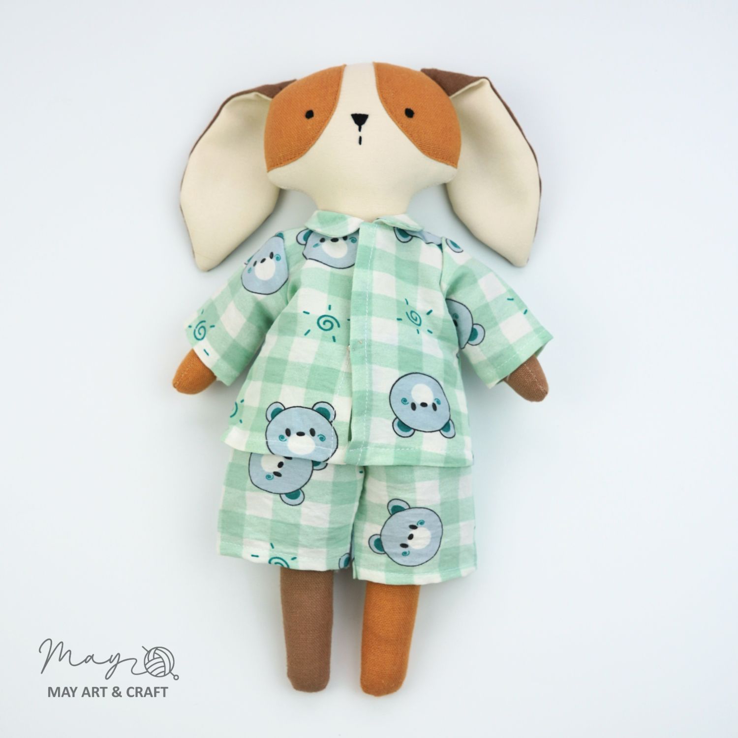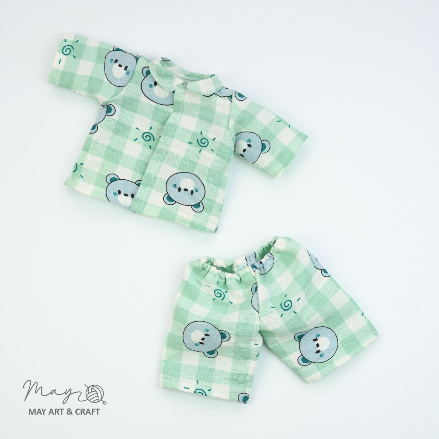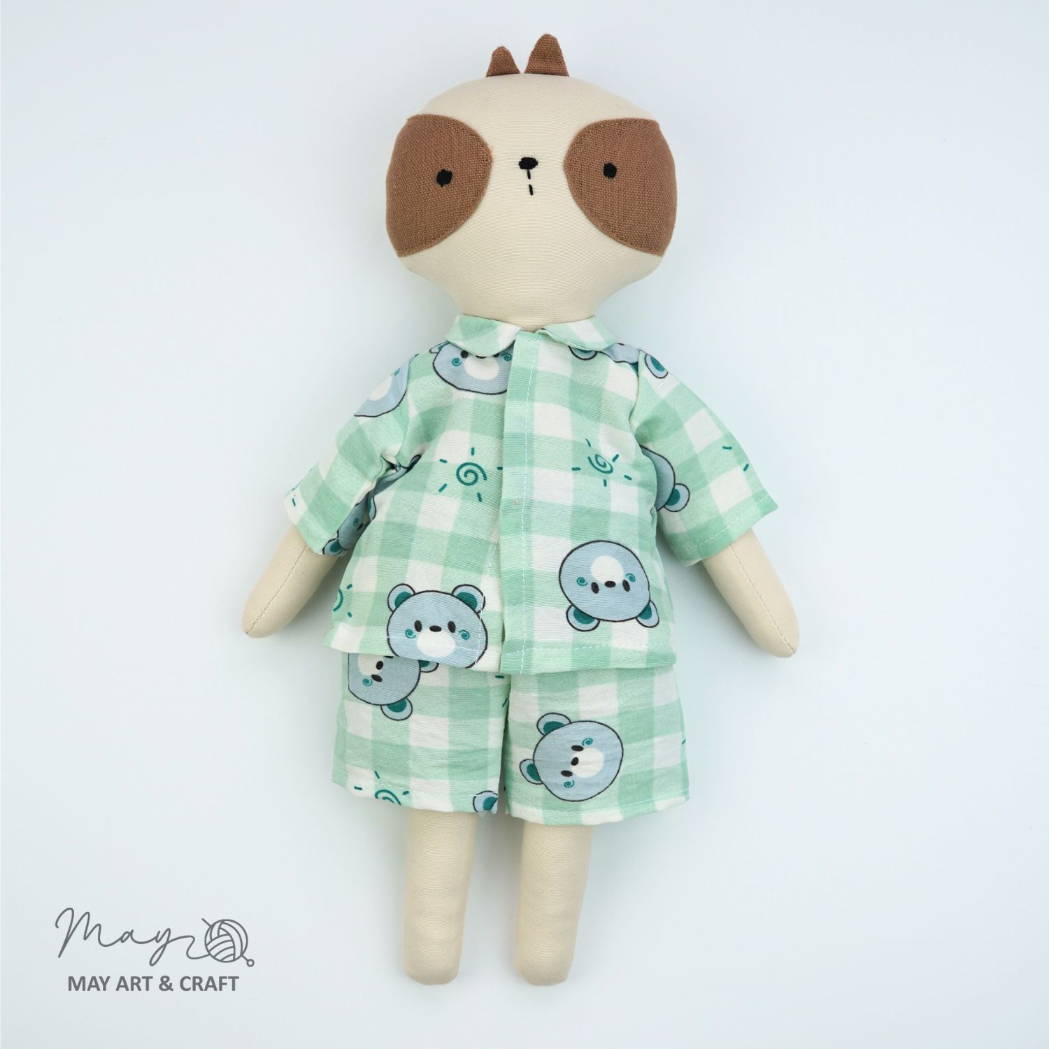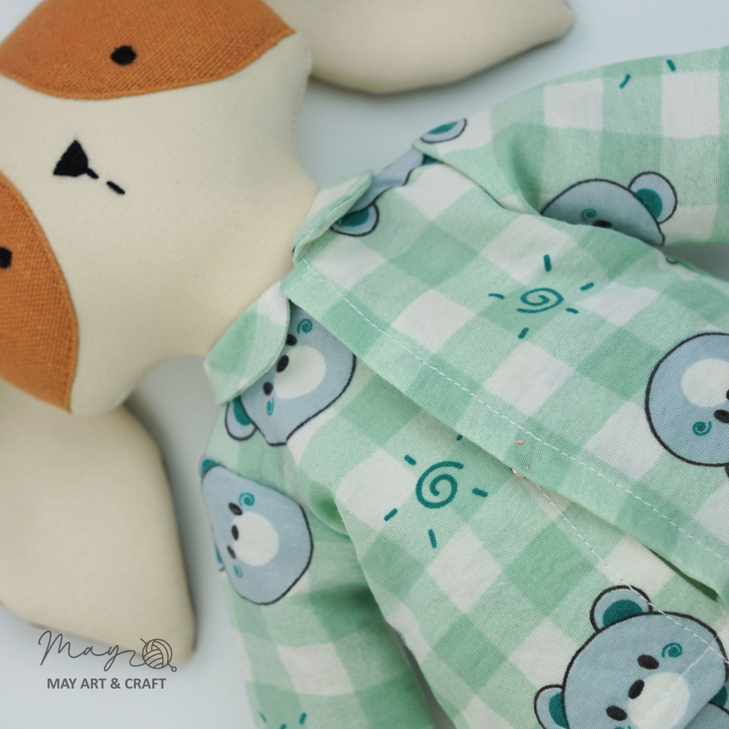Bộ đồ ngủ Pyjama bao gồm 1 áo dài tay cổ sen, một quần lửng chun (phù hợp với mọi bé thú bông size 30cm nhà May) sẽ là người bạn đồng hành cùng bé đi vào giấc ngủ ngon lành.