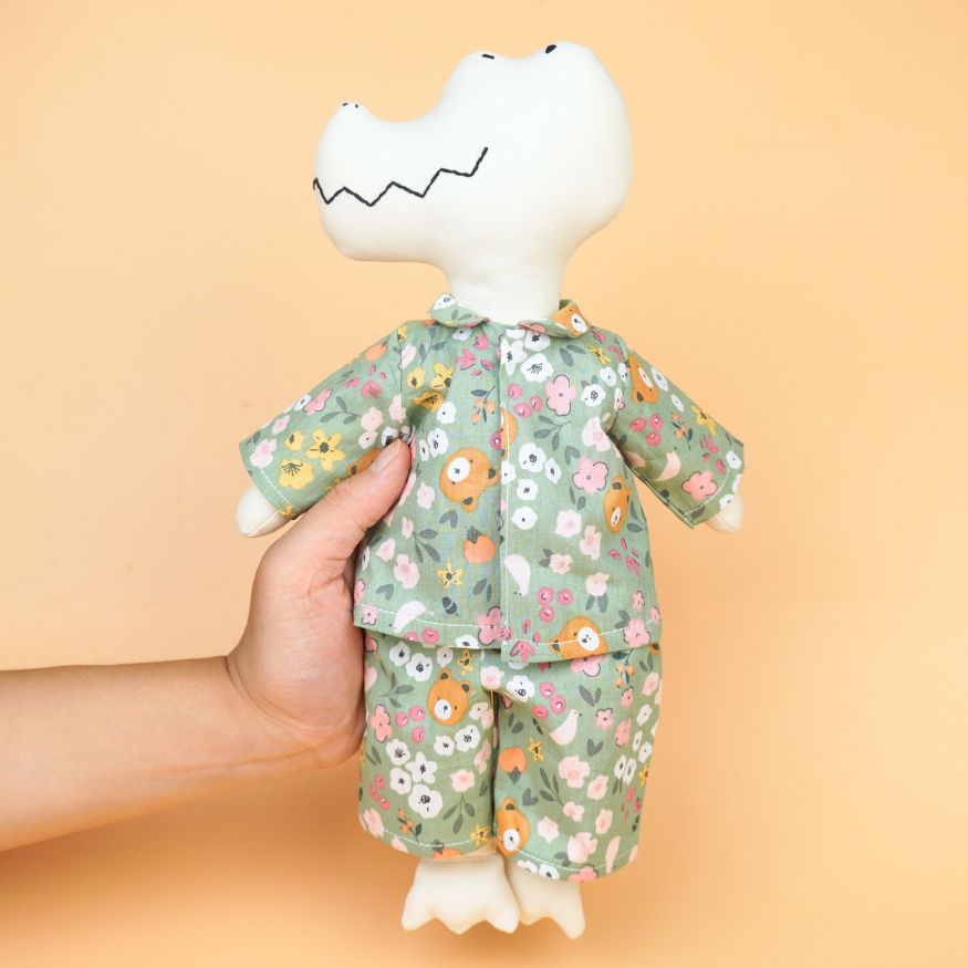 Mẫu đồ ngủ có nhiều họa tiết đáng yêu phù hợp cho cả nam và nữ. Chất liệu vải an toàn, đường may chắc chắn, sản phẩm thường được mua kèm với các loại phôi thú bông của Tiệm để trở thành món quà hoàn hảo cho các bạn nhỏ trải nghiệm thay đồ, phối đồ cho thú bông theo sở thích và phong cách cá nhân vô cùng độc đáo, thú vị. Tuy nhiên cần giặt tay và phơi khô tự nhiên trước khi sử dụng để sạch hoàn toàn bụi vải nếu như sử dụng cho các bạn nhỏ.