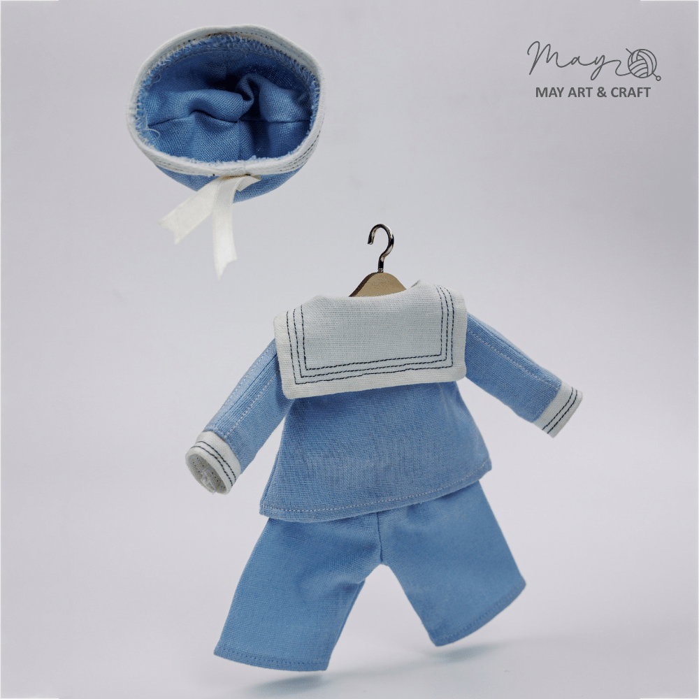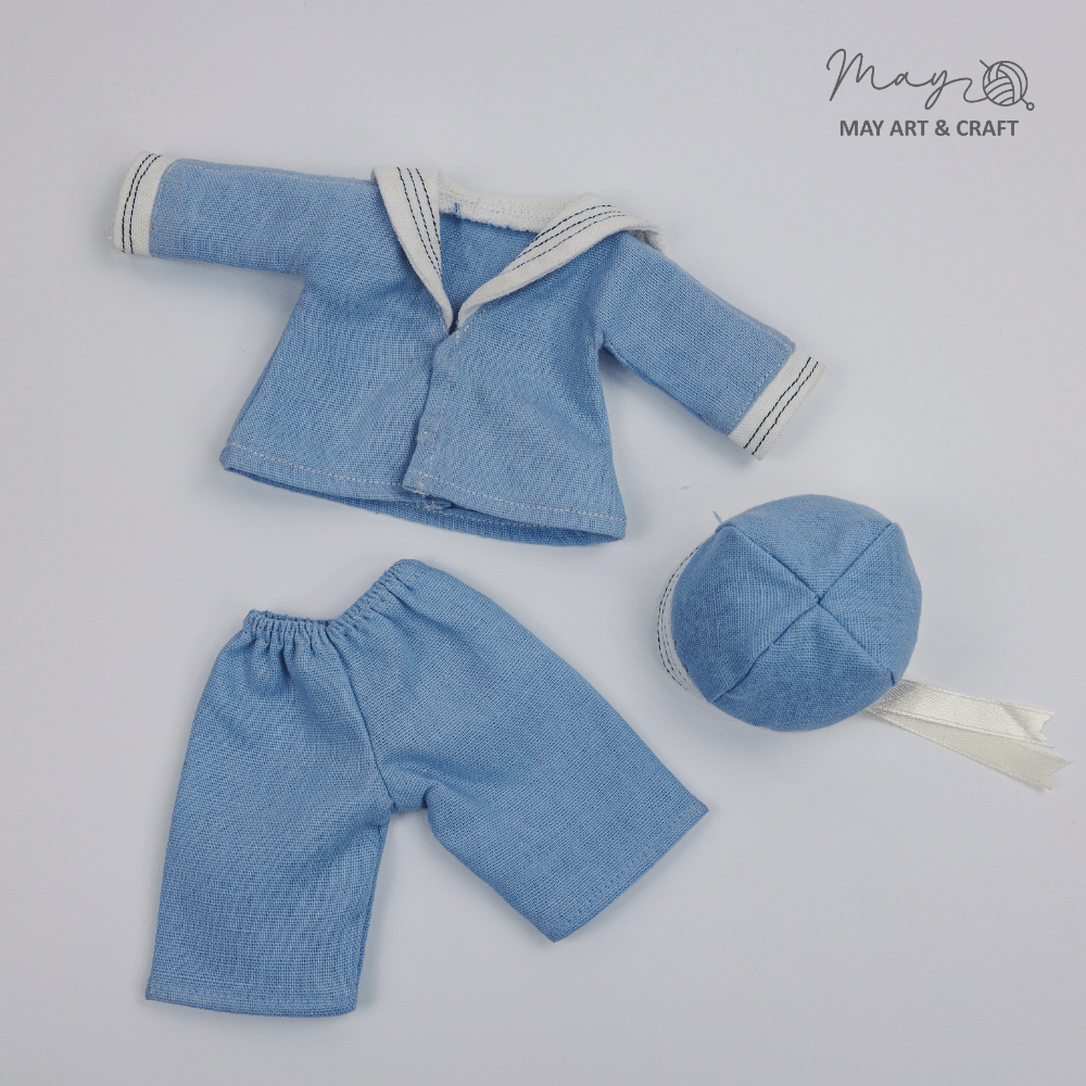 Bộ đồ thuỷ thủ là trang phục được Tiệm tạp hoá nhà May thiết kế may đo riêng cho các loại phôi thú bông của Tiệm. Sản phẩm bao gồm bộ quần áo và mũ đi kèm, được may từ vải thô với tông màu xanh da trời dễ thương, quần chun và áo được đính cúc bấm thủ công vừa an toàn vừa dễ dàng thao tác.