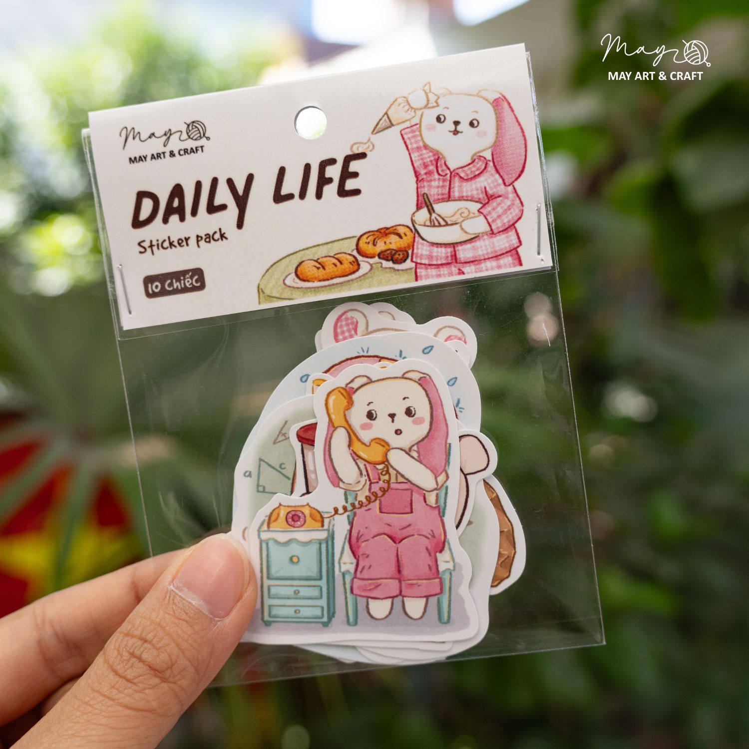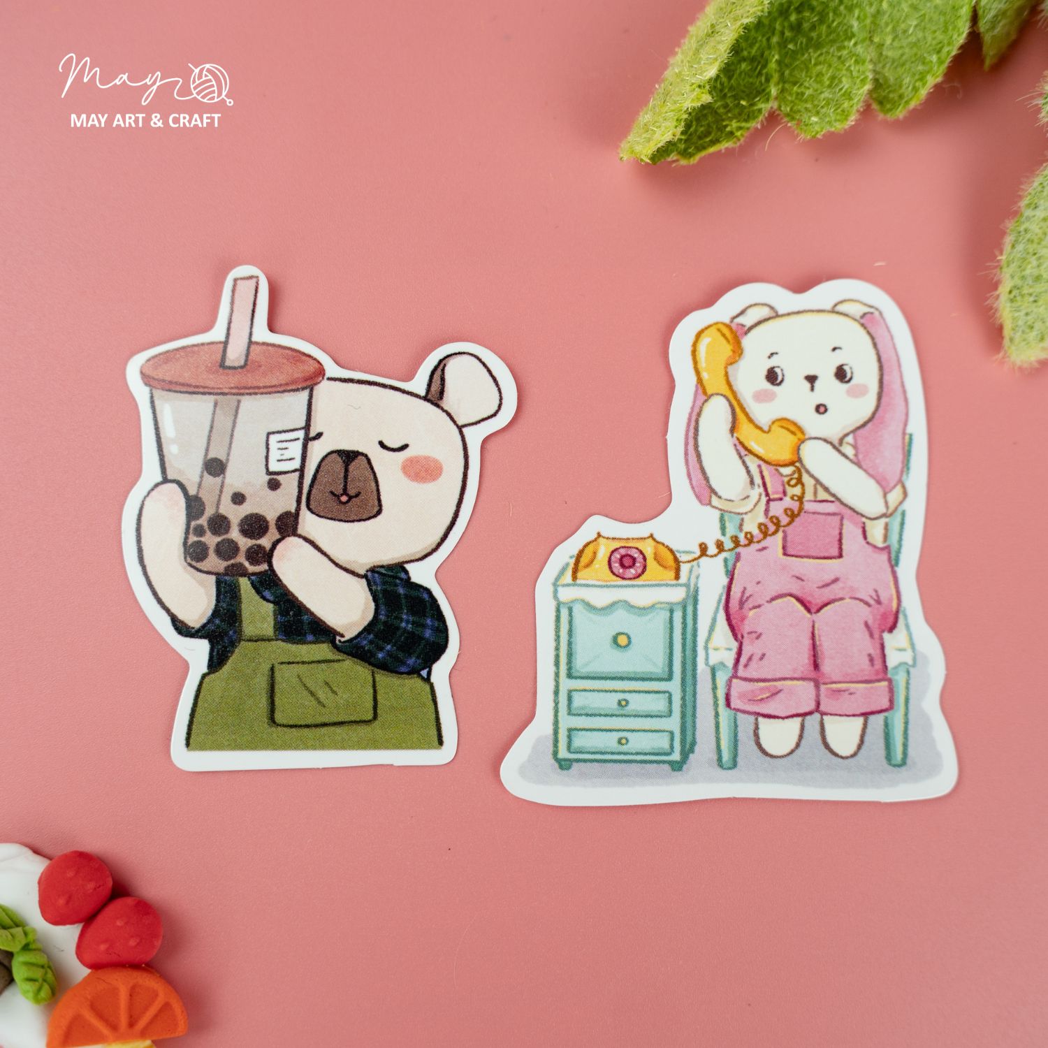 Set 10 sticker hình thú bông vải thiết kế độc quyền của Tiệm Tạp hoá Nhà May với nhân vật chính là các bé thú bông xinh xắn, mỗi sticker có chiều cao từ 3 - 7 cm, in bằng chất liệu decal cán bóng không thấm nước, dùng để trang trí trên nhiều đồ dùng khác nhau như thiệp, sổ, bình nước, mũ bảo hiểm, laptop,...