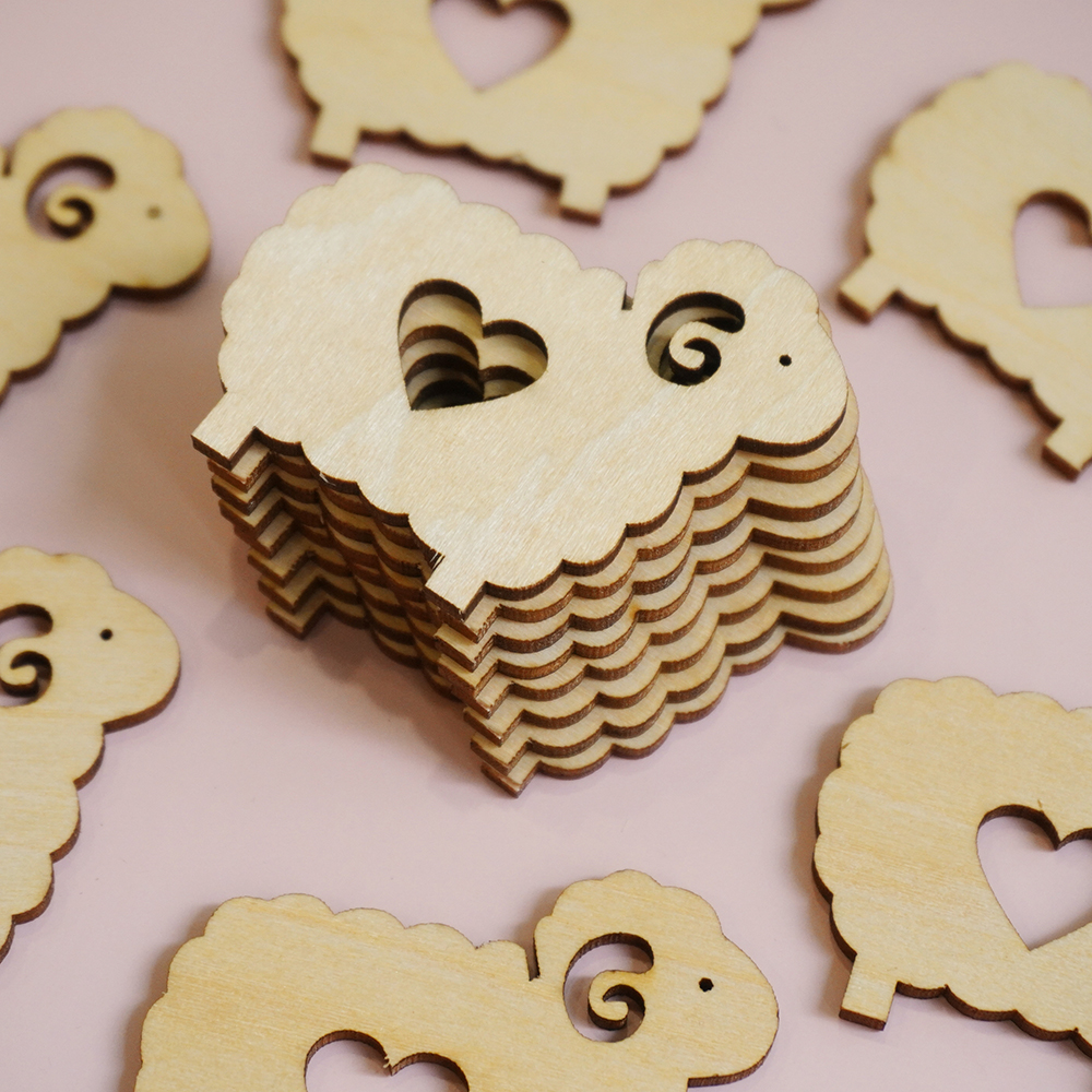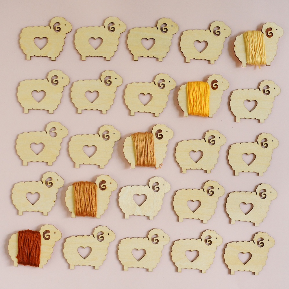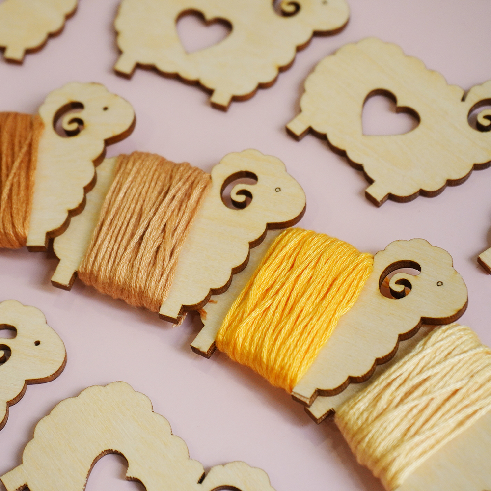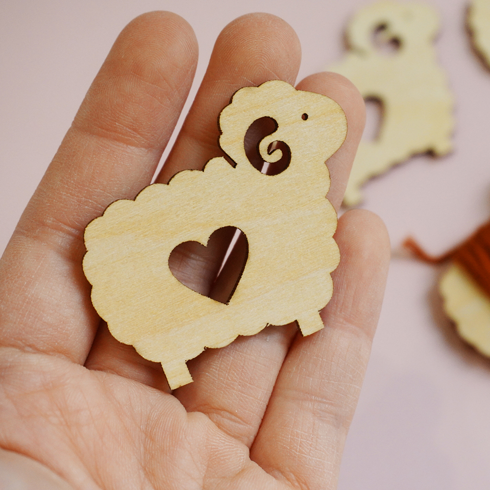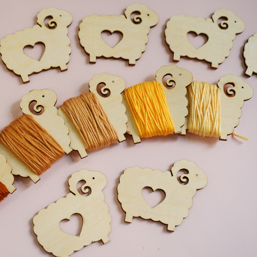 Set bobbin (miếng cuốn chỉ) hình chú cừu xinh xắn, chất liệu gỗ dày 1.5mm, kích thước khoảng 4,5cm x 3cm.