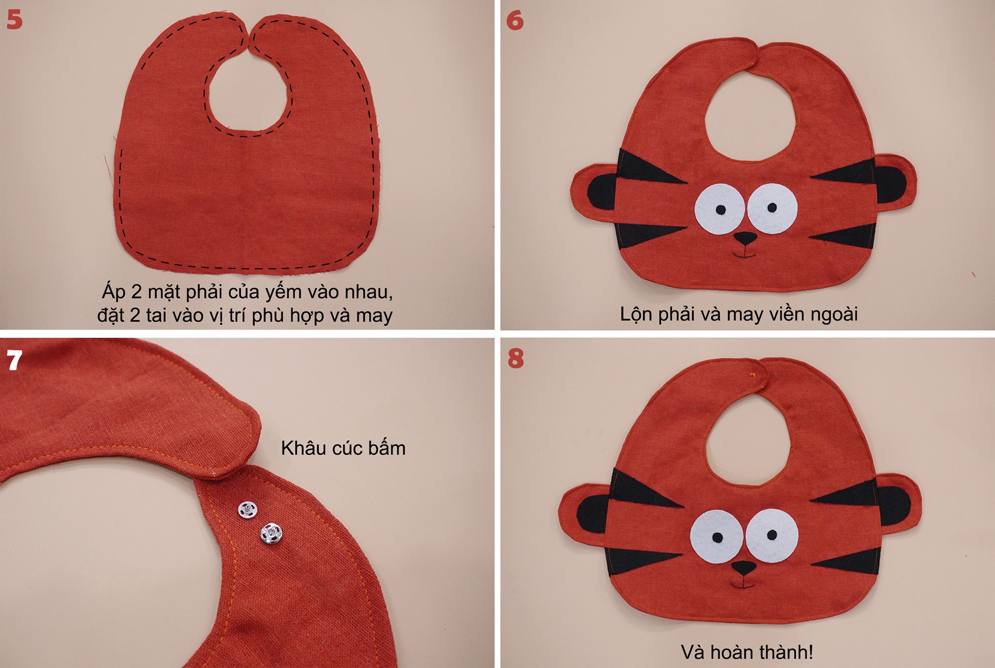 Dáng yếm đeo cơ bản nhất và cách làm cũng đơn giản nhất trong số các loại yếm cho bé yêu. Các mẹ đừng quên lưu lại cách làm và sáng tạo thêm nhiều hình động vật và màu sắc mà bé yêu thích nhé!