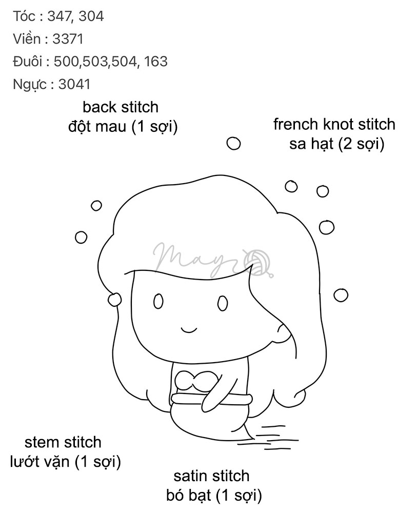 Cách thêu chibi nàng tiên cá mà không cần biết vẽ (có mẫu in)