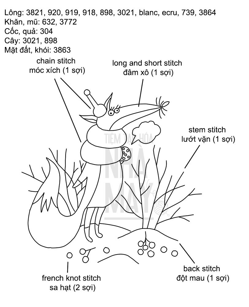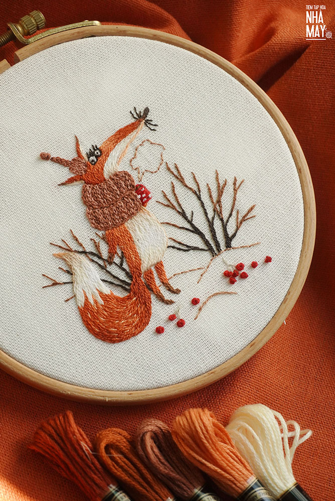 Cách thêu tỉa lông chú cáo đeo khăn len (có mẫu in)