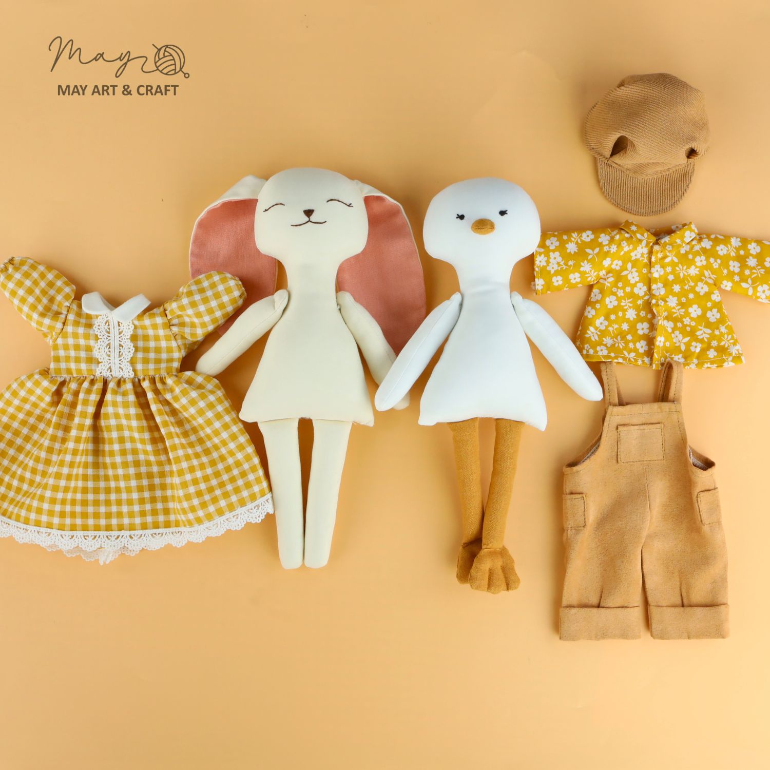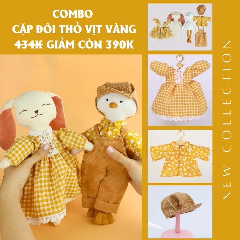 Sản phẩm nằm trong bộ sưu tập thú bông vải của Tiệm tạp hoá nhà May. Phôi thú bông được may từ vải kaki cao cấp nhồi bông sợi không gây dị ứng, có kích thước khoảng 30cm, toàn bộ trang phục trong combo được may vừa vặn với phôi.