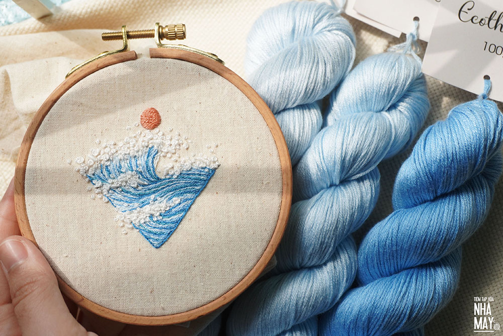 Hướng dẫn rút chỉ: Khi rút chỉ không cần tháo cả cuộn ra, chỉ cần rút từng sợi từ đầu tròn của bó chỉ sau đó tách sợi để thêu như bình thường