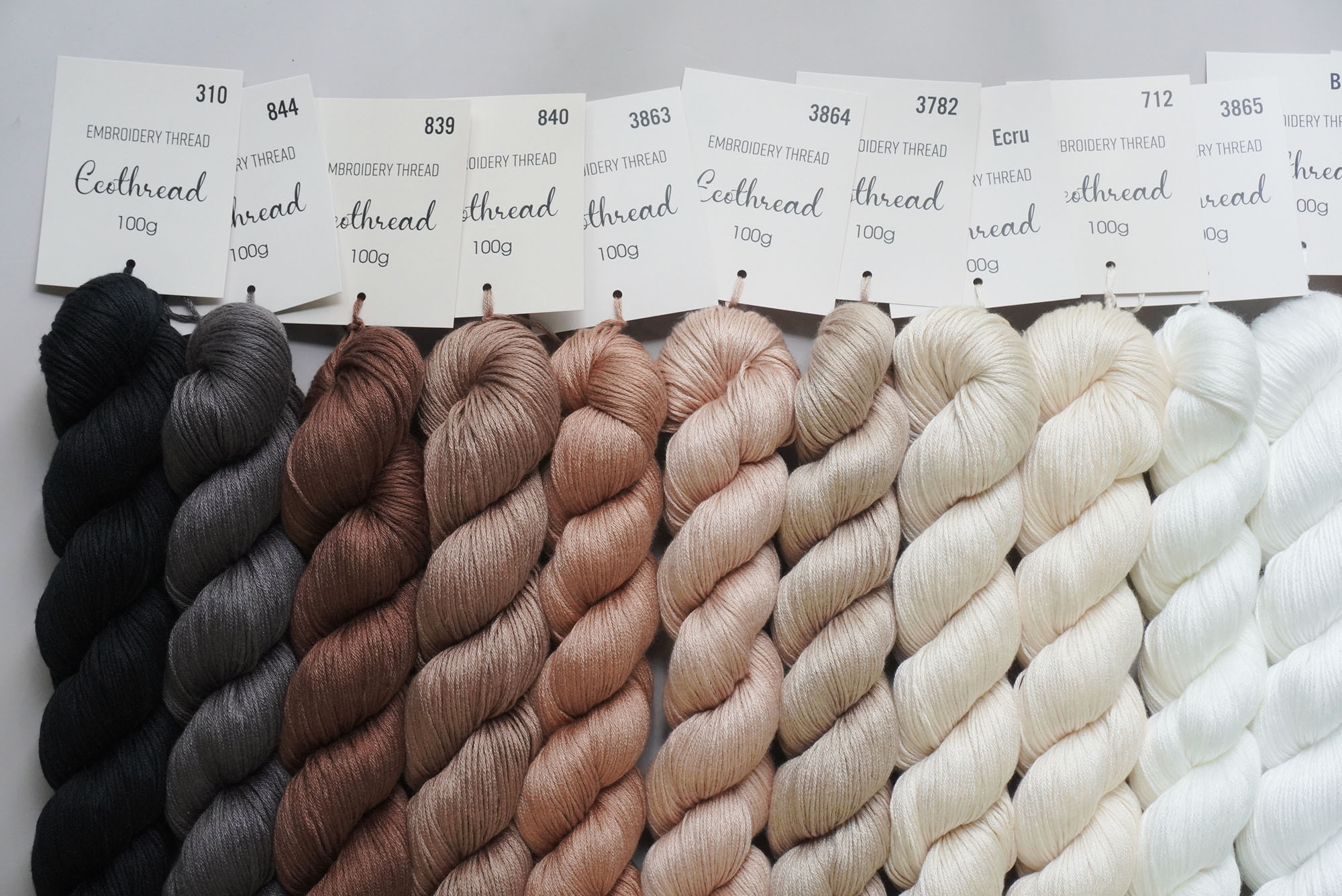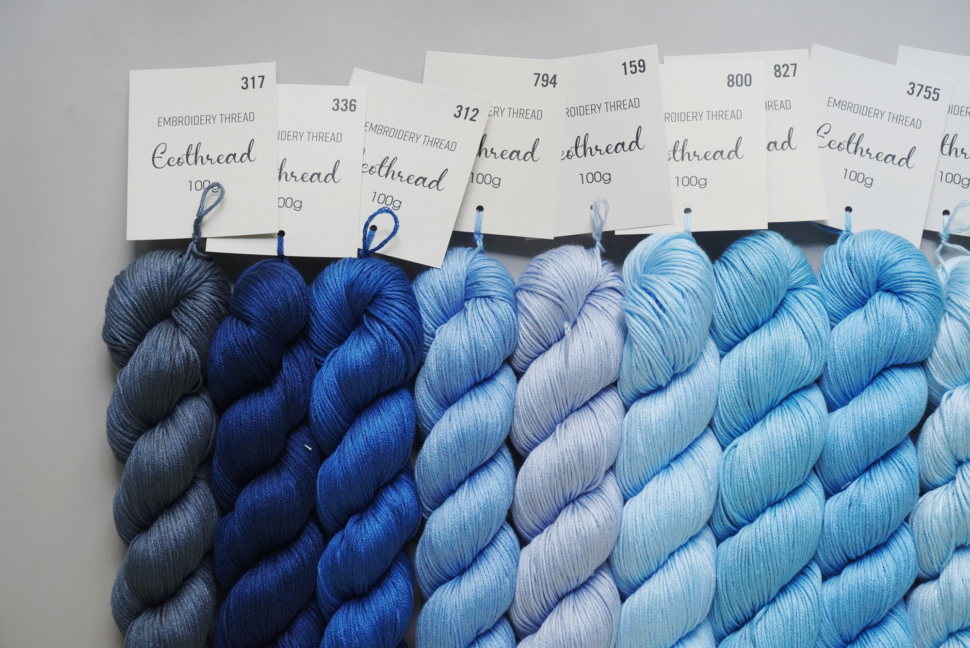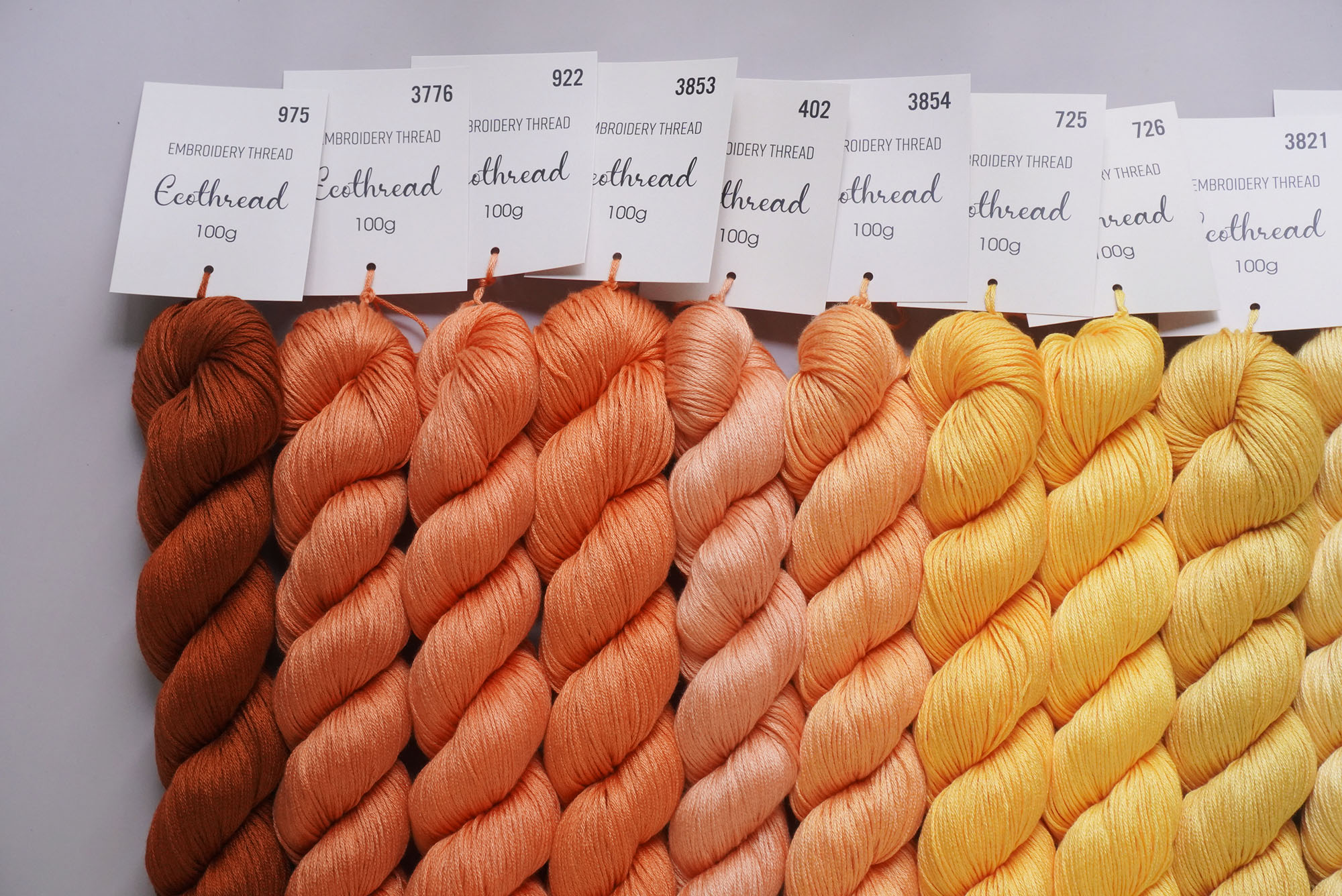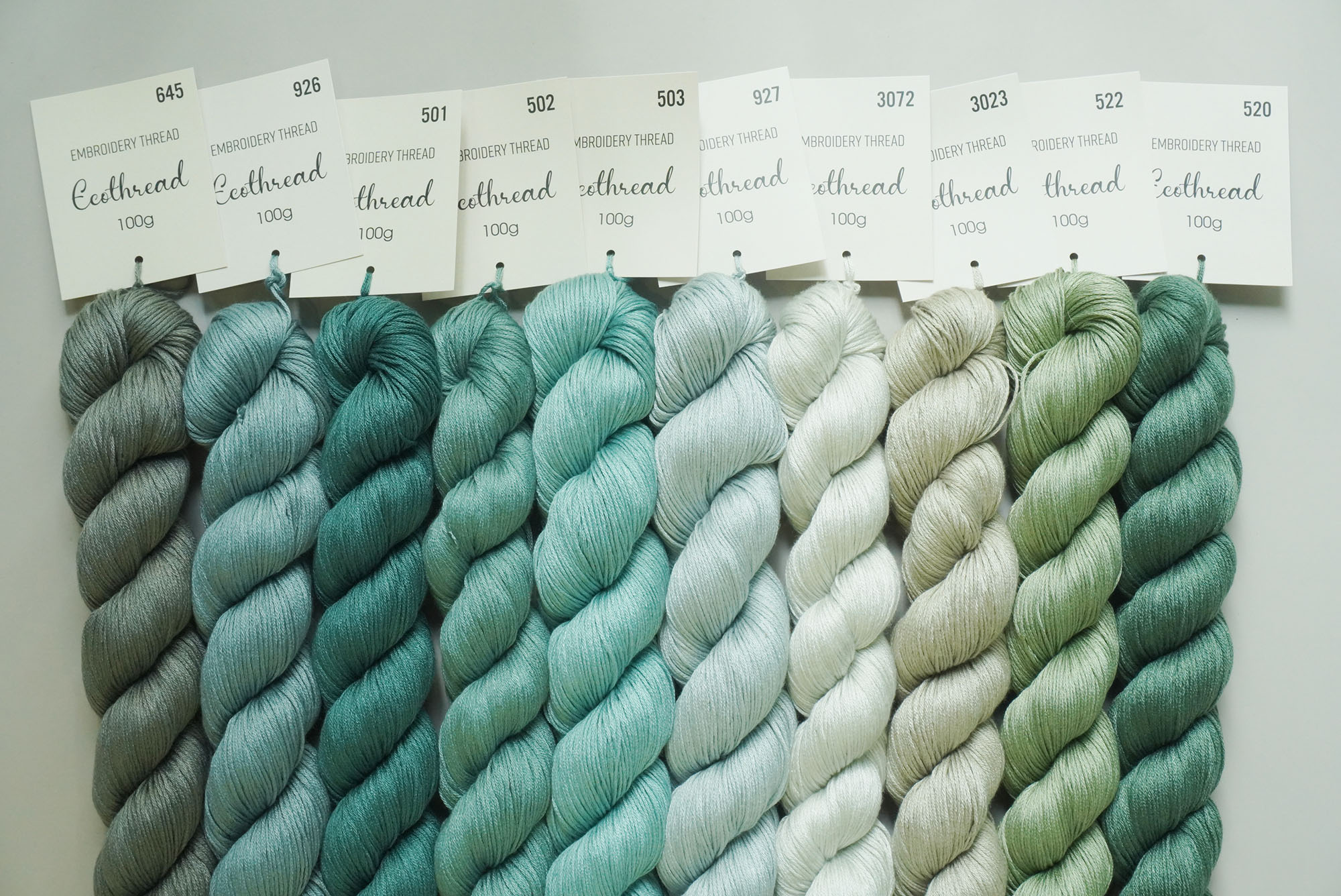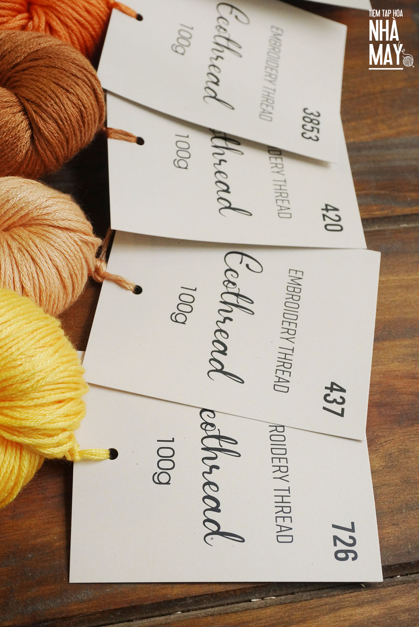 Chỉ thêu Eco-thread - Dòng chỉ mới được đặt nhuộm theo công nghệ nhuộm sinh học gồm 153 màu chỉ mà tiệm hay dùng, có mã màu tương đương với chỉ DMC.