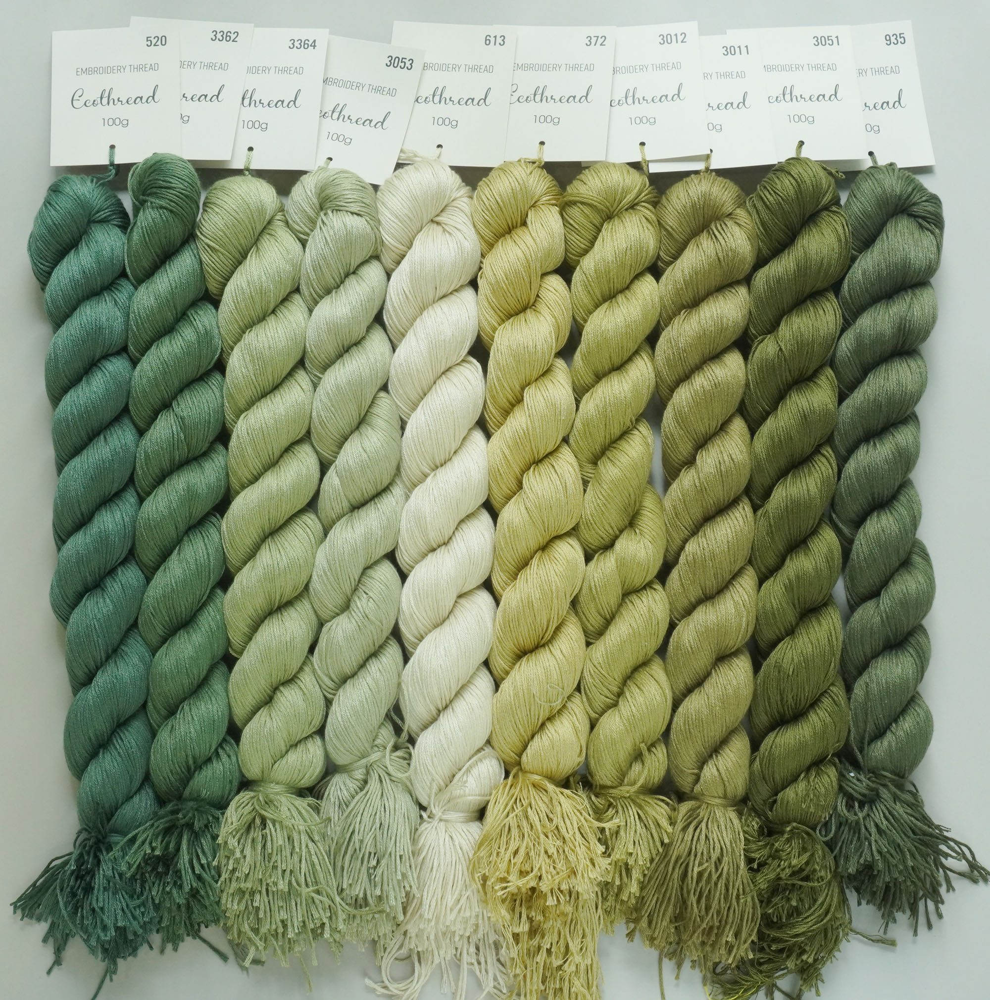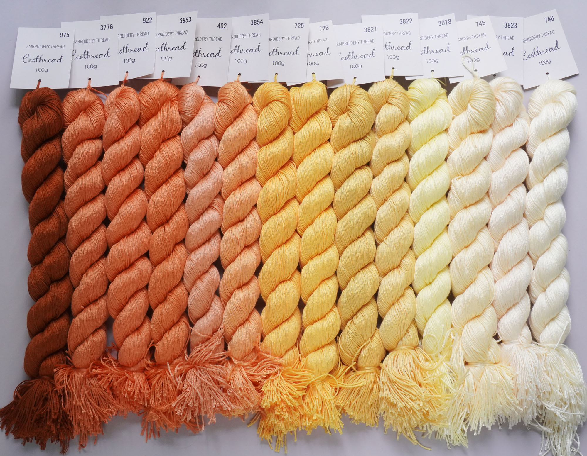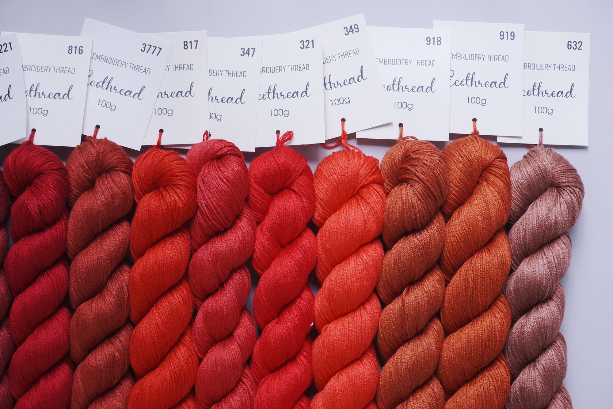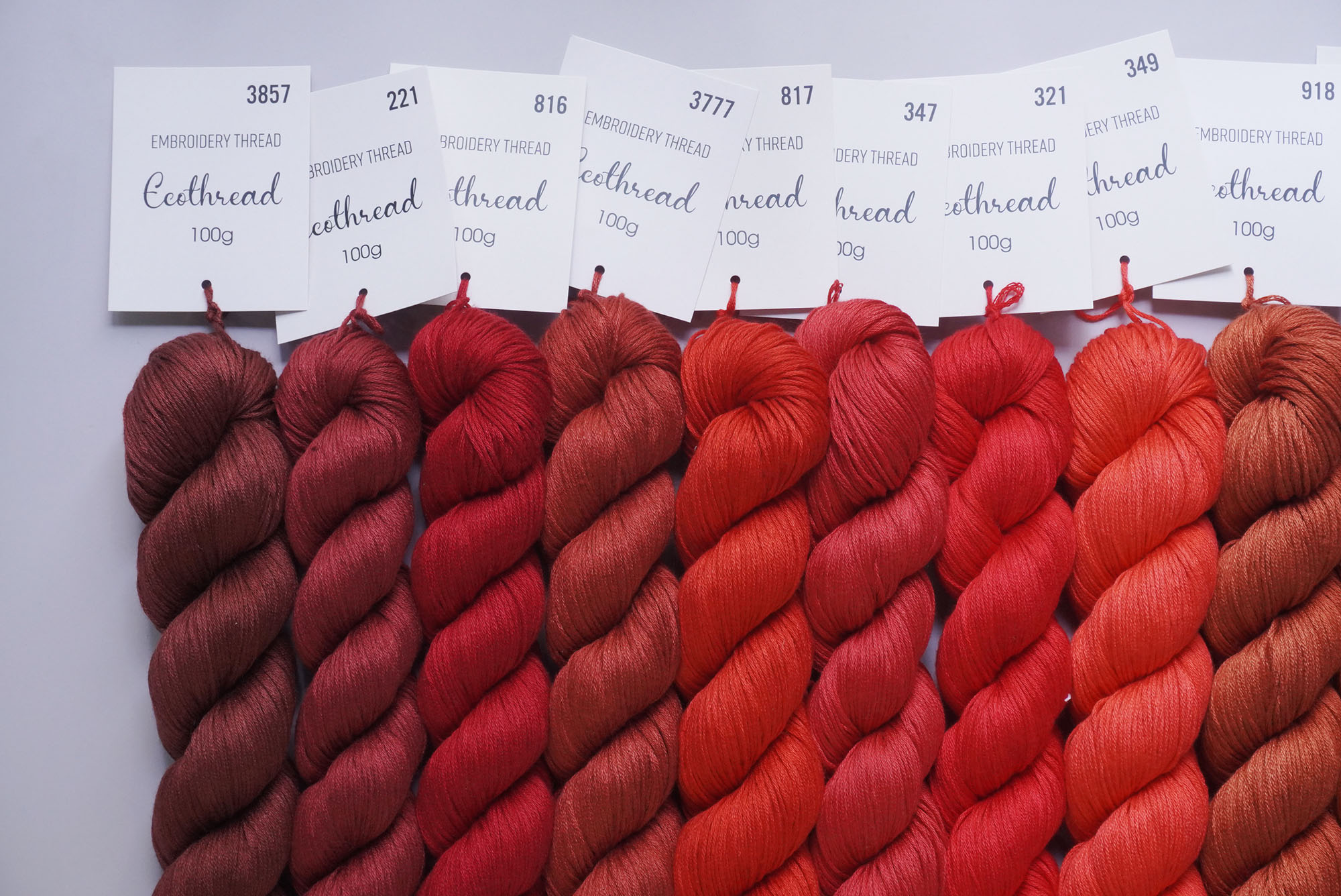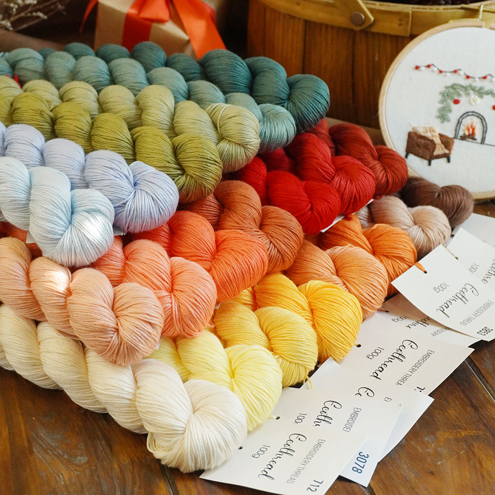 Chỉ thêu Eco-thread - Dòng chỉ mới được đặt nhuộm theo công nghệ nhuộm sinh học gồm 153 màu chỉ mà tiệm hay dùng, có mã màu tương đương với chỉ DMC.