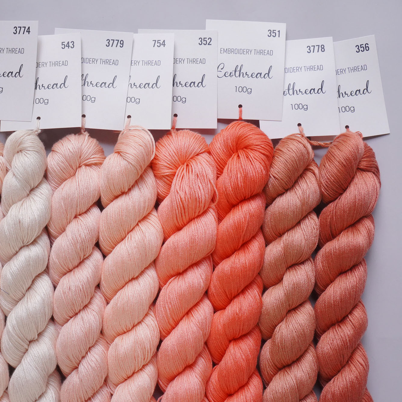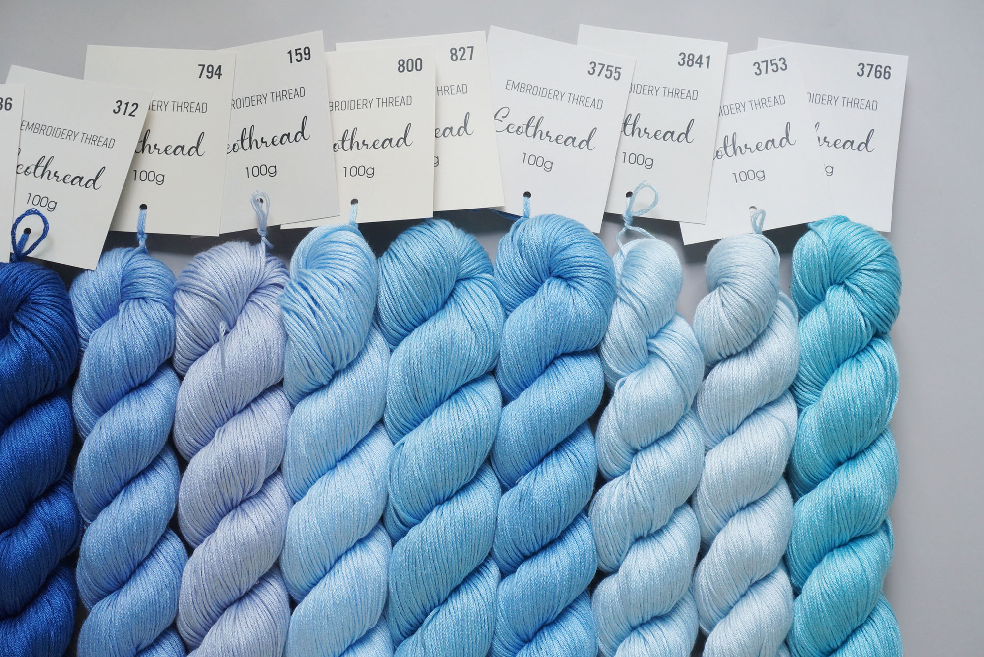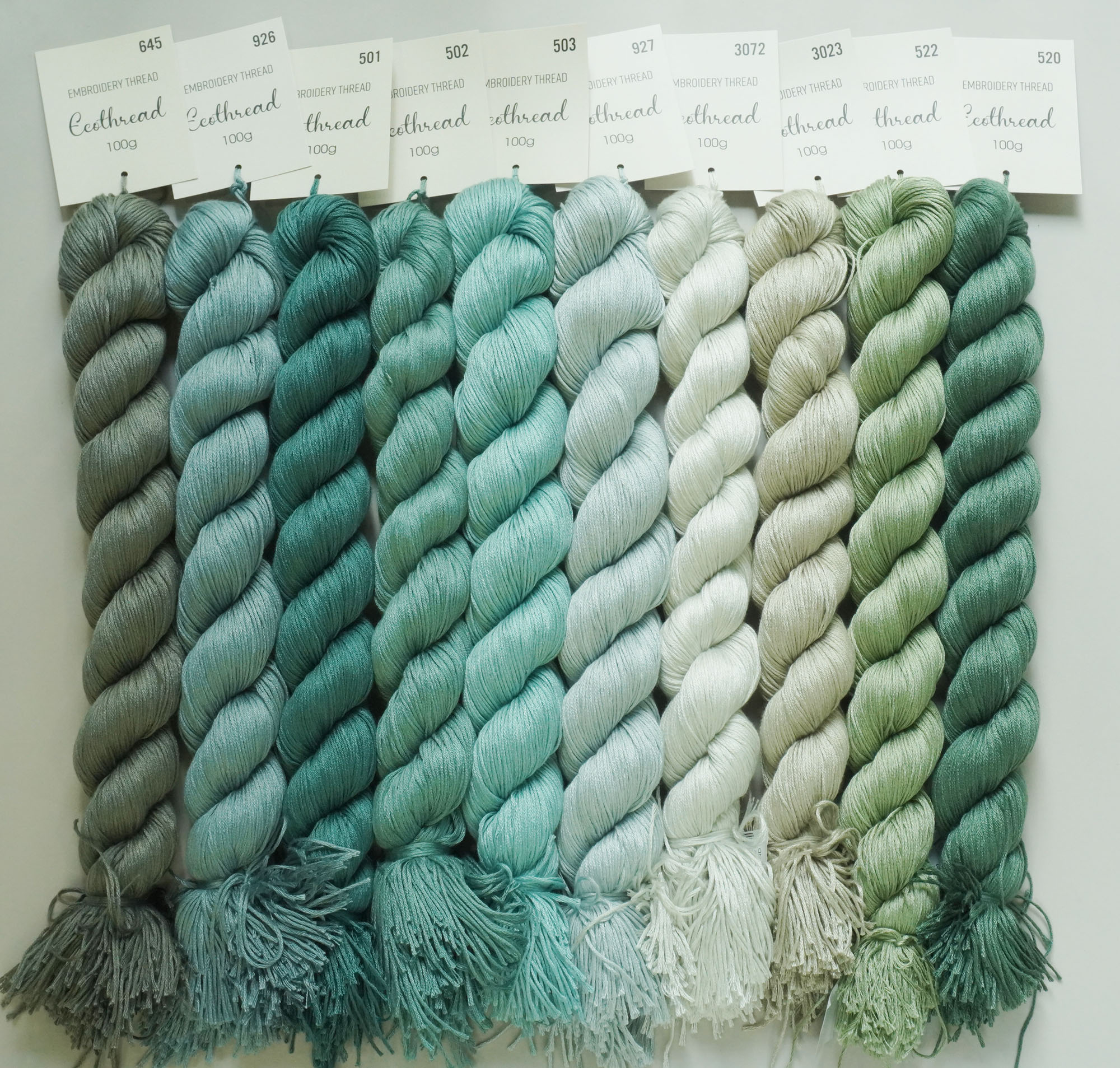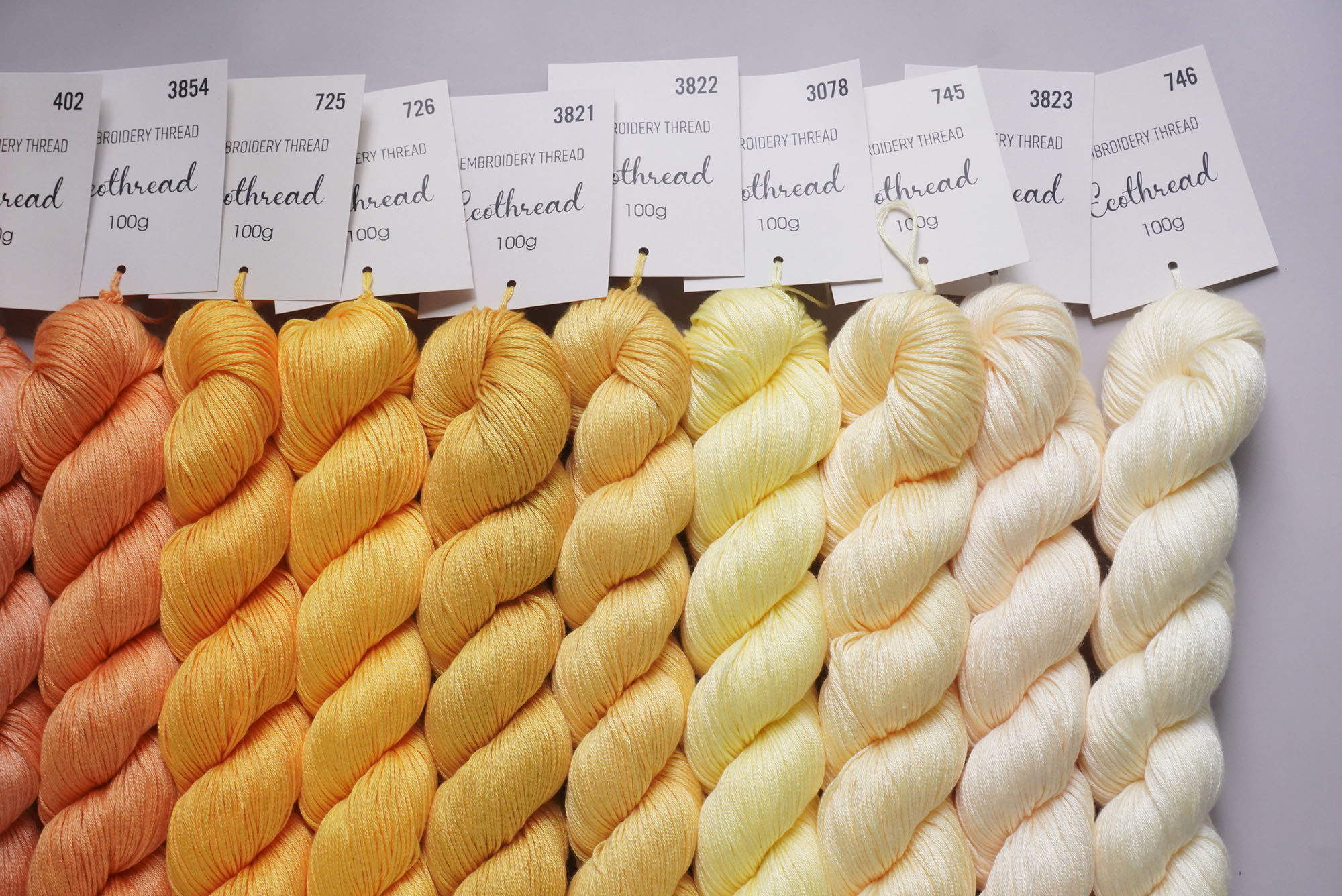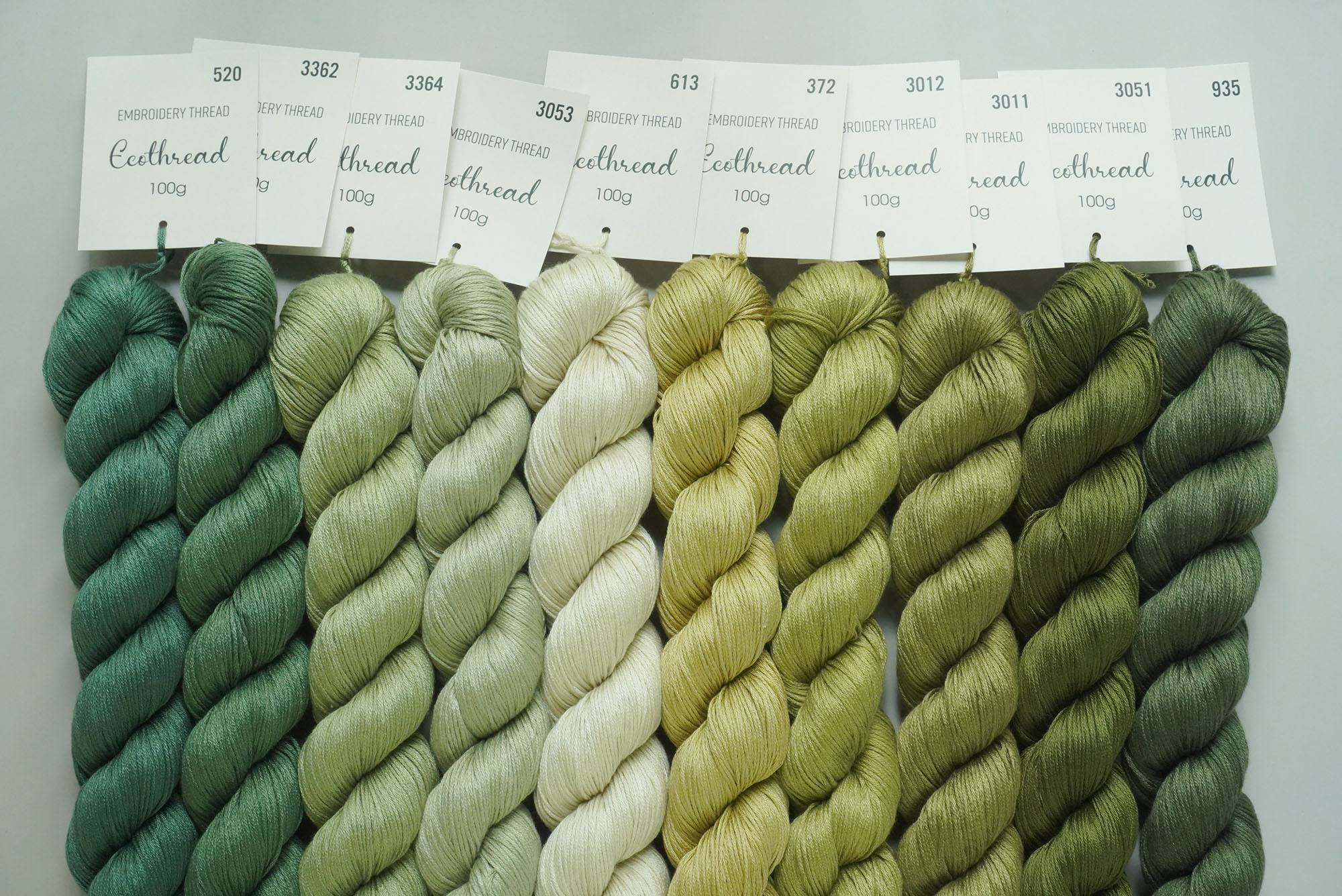 Chỉ thêu Eco-thread - Dòng chỉ mới được đặt nhuộm theo công nghệ nhuộm sinh học gồm 153 màu chỉ mà tiệm hay dùng, có mã màu tương đương với chỉ DMC.