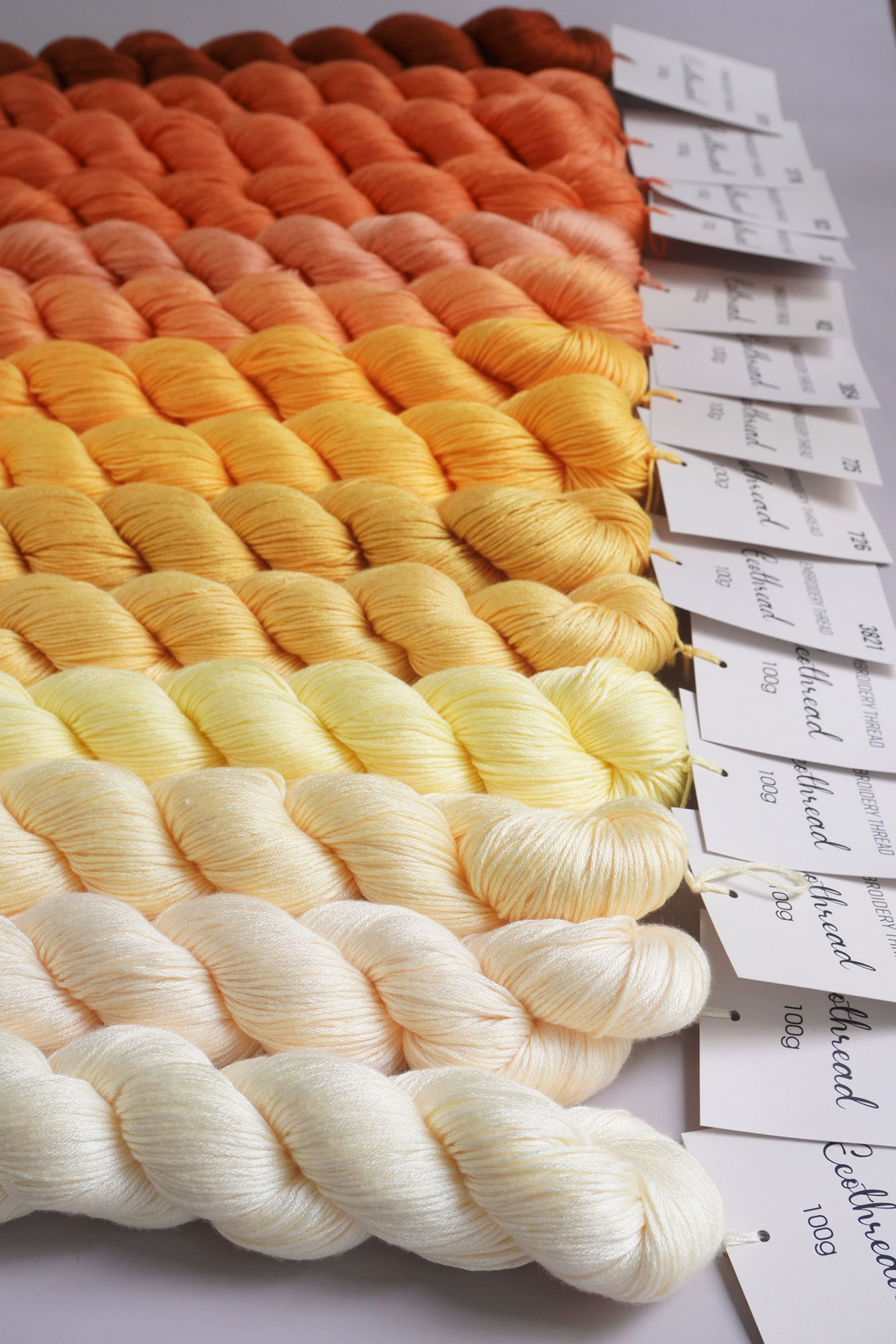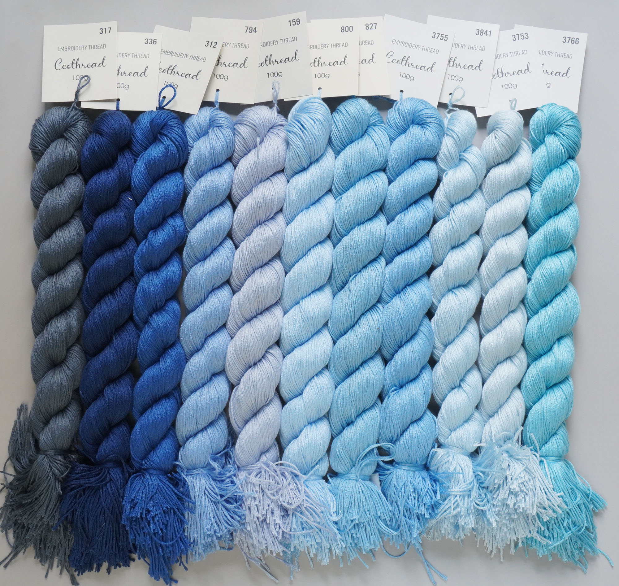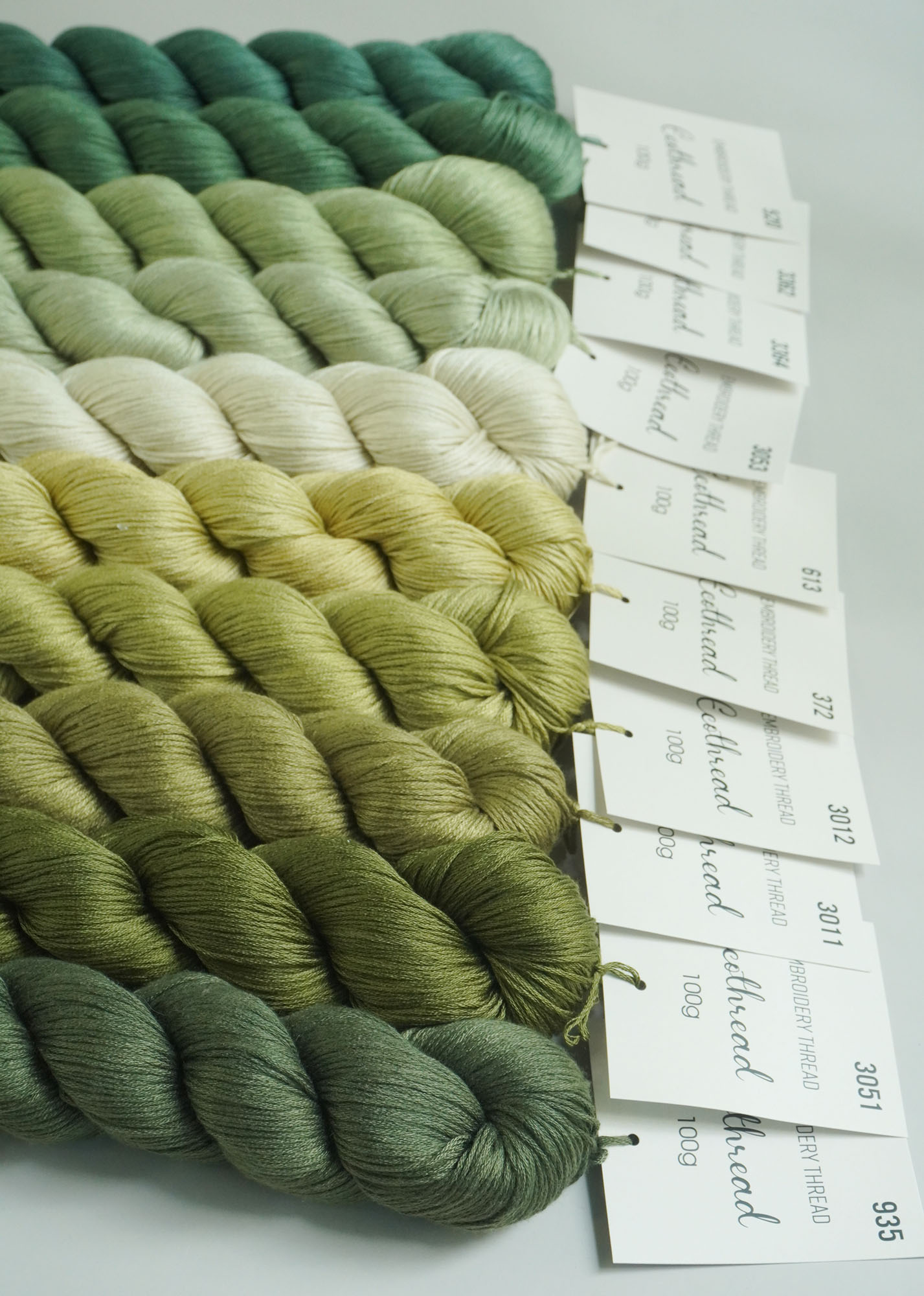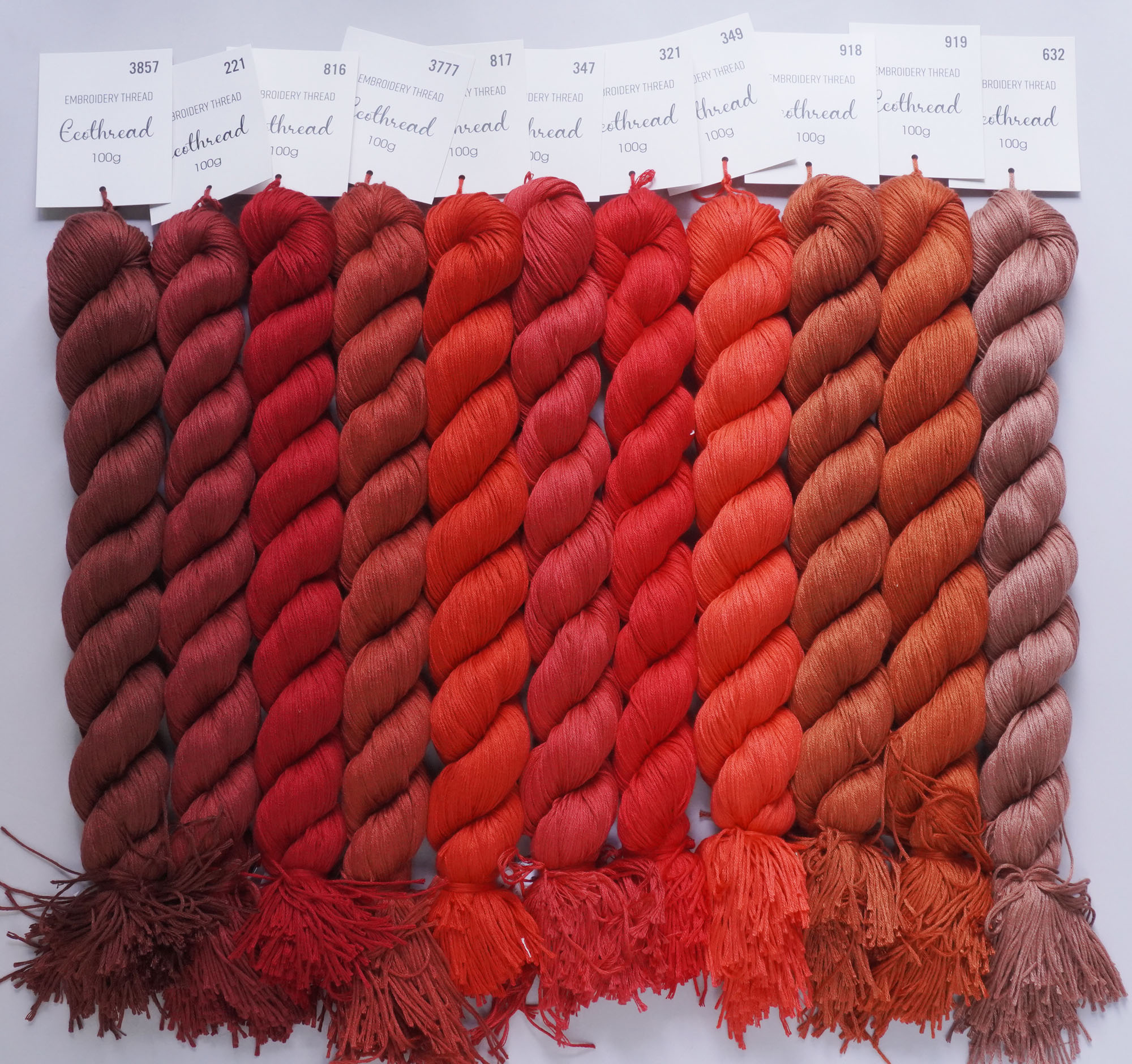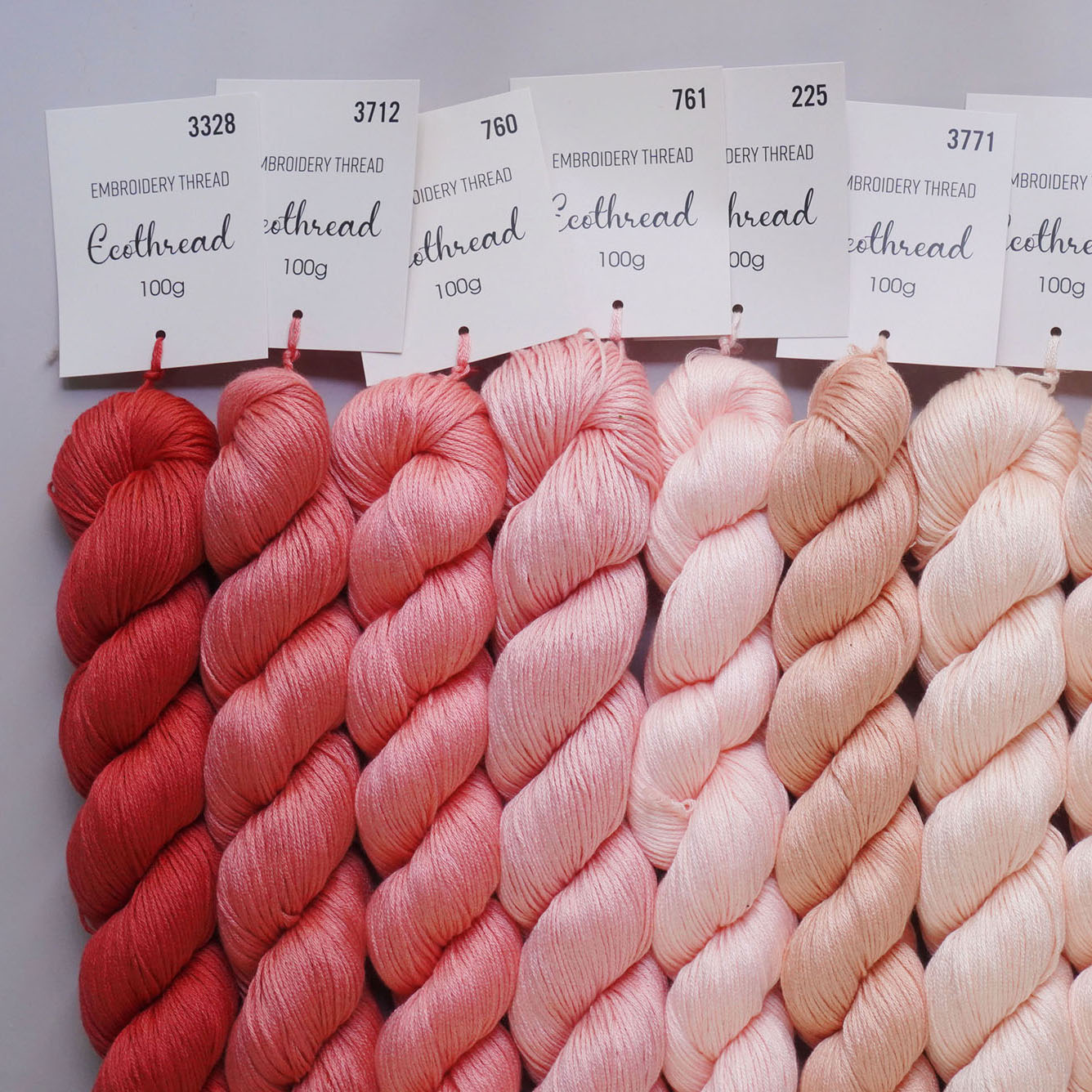Chỉ thêu Eco-thread - Dòng chỉ mới được đặt nhuộm theo công nghệ nhuộm sinh học gồm 153 màu chỉ mà tiệm hay dùng, có mã màu tương đương với chỉ DMC.