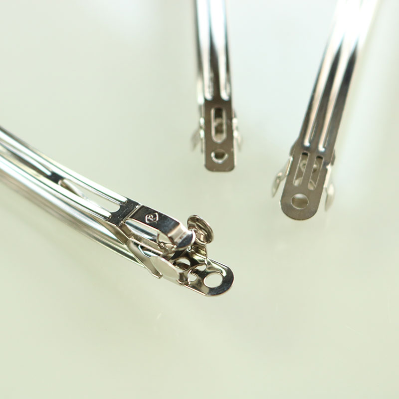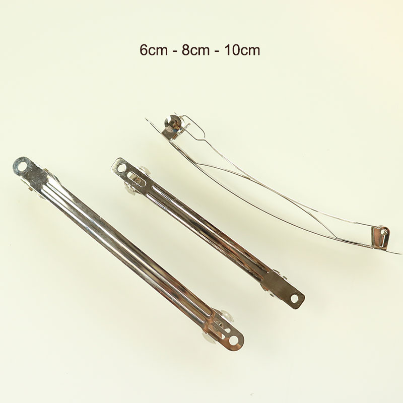 Kẹp tóc bấm có bề mặt mạ bạc bóng, mịn, không bong tróc. Dùng để kẹp tóc, bạn có thể dùng làm phôi dán vải thêu hình lên tạo thành những chiếc kẹp xinh xắn độc đáo.