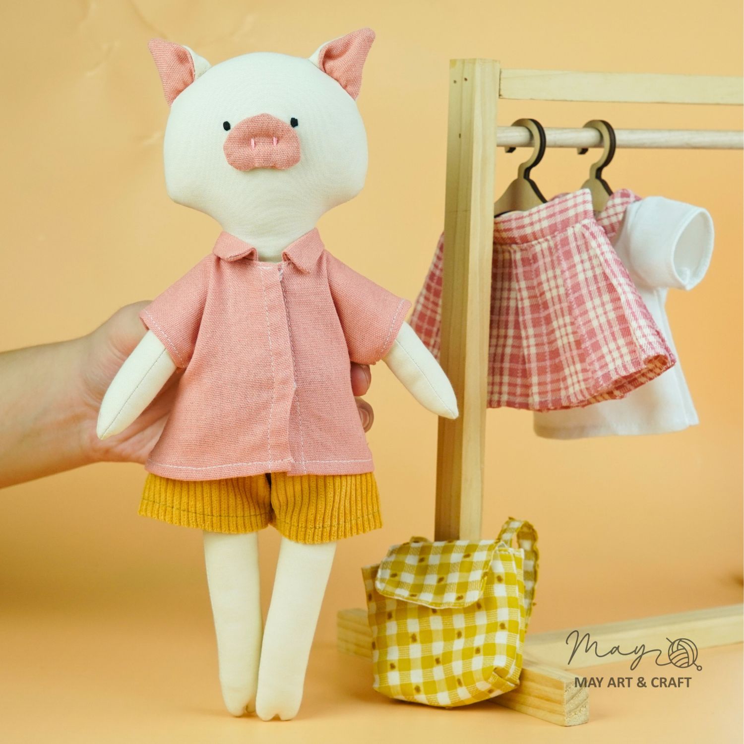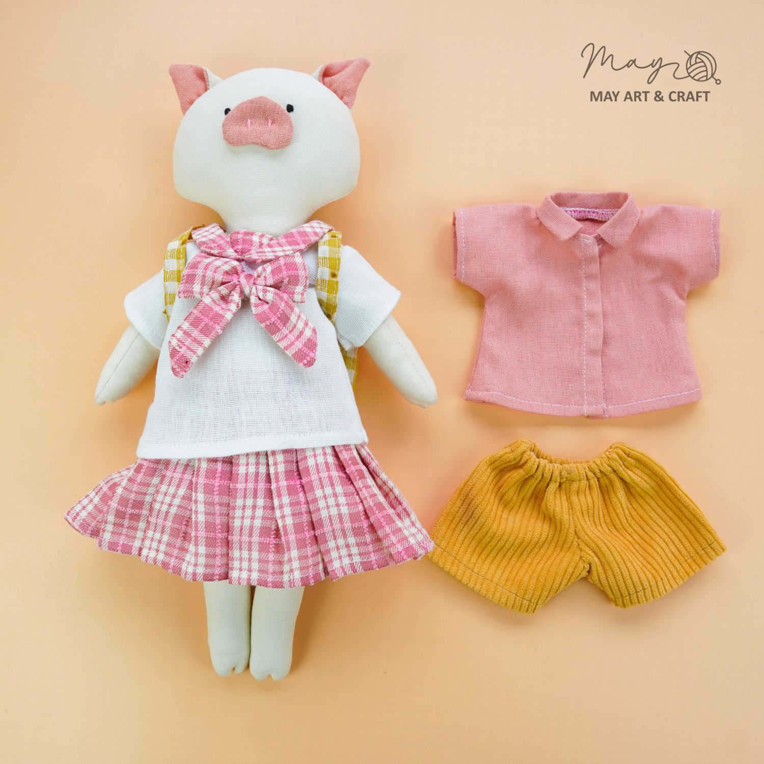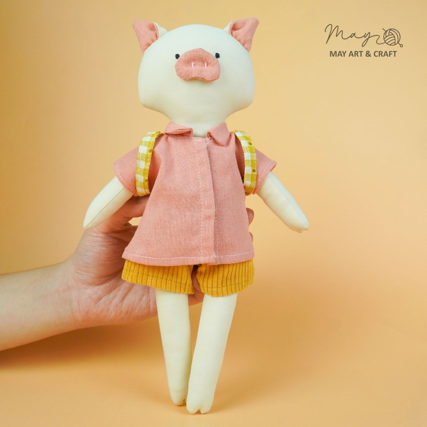 Sản phẩm nằm trong bộ sưu tập thú bông vải của Tiệm tạp hoá nhà May. Phôi thú bông được may từ vải kaki cao cấp nhồi bông sợi không gây dị ứng, có kích thước khoảng 30cm, các trang phục và phụ kiện đi kèm được may vừa vặn với phôi.