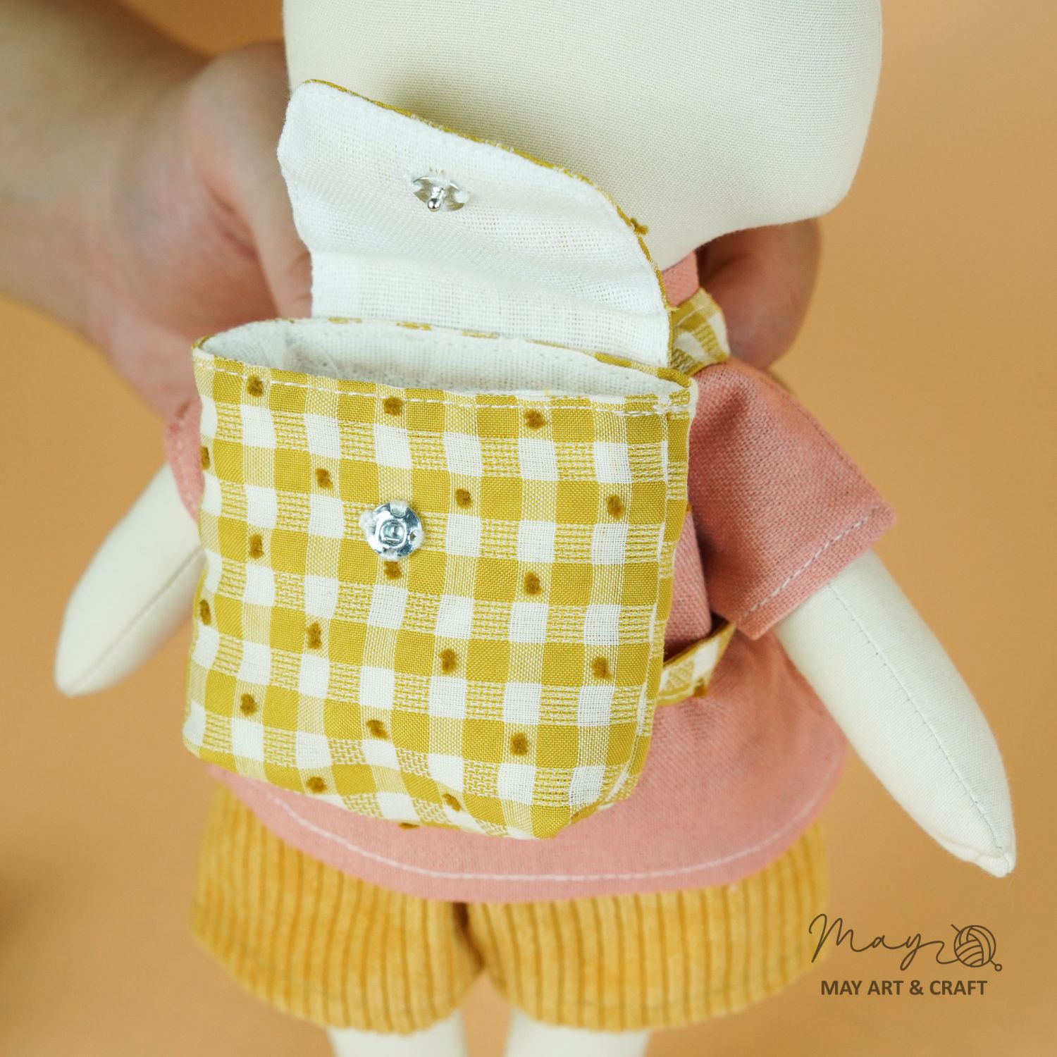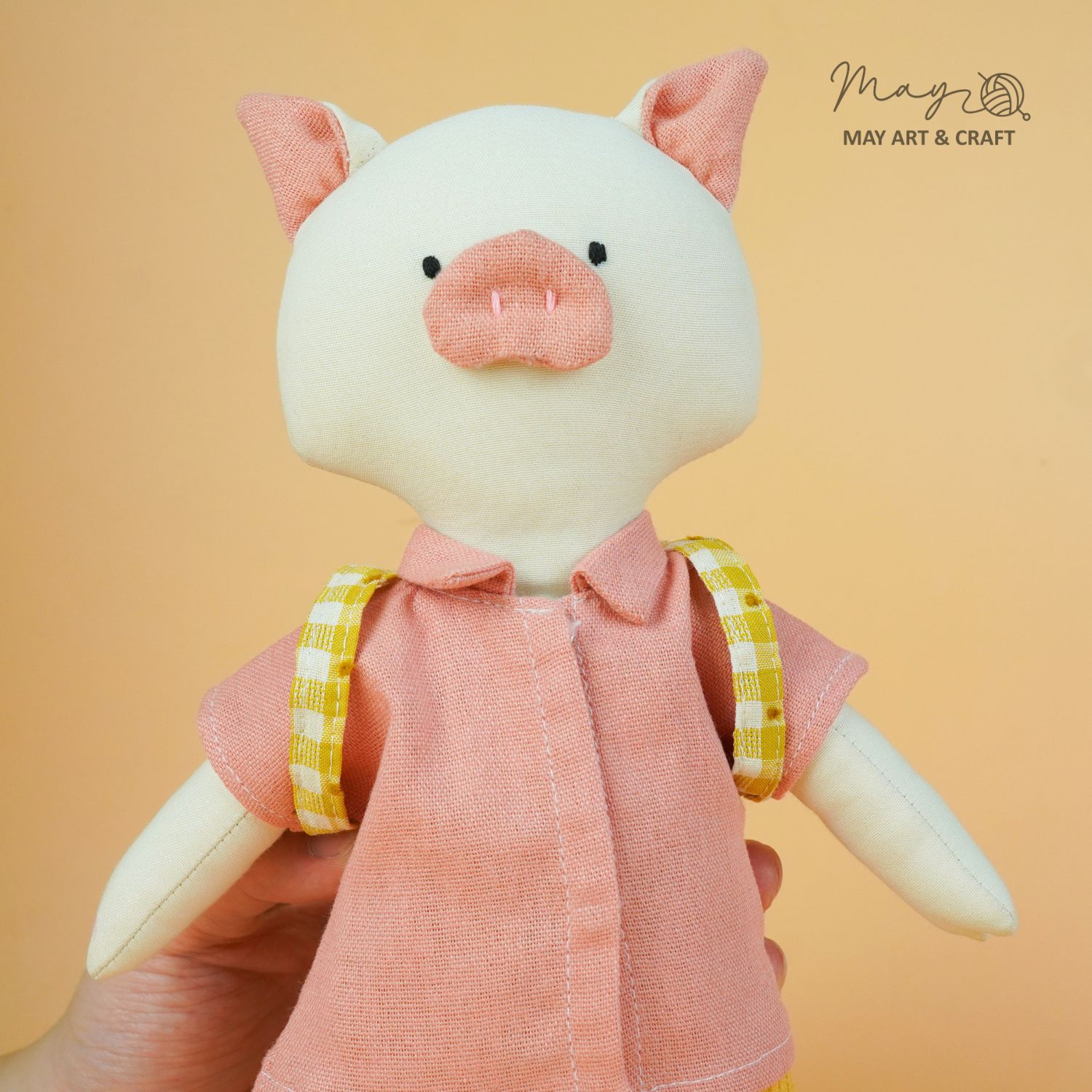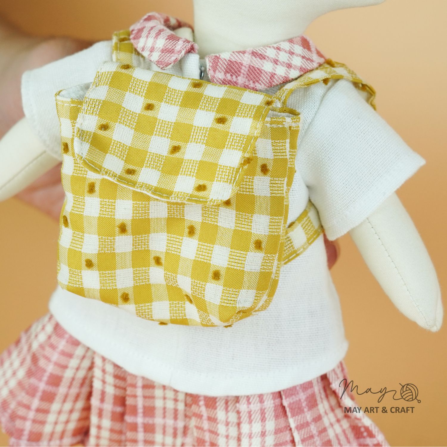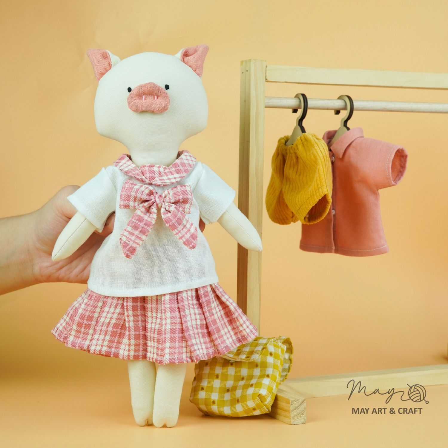 Sản phẩm nằm trong bộ sưu tập thú bông vải của Tiệm tạp hoá nhà May. Phôi thú bông được may từ vải kaki cao cấp nhồi bông sợi không gây dị ứng, có kích thước khoảng 30cm, các trang phục và phụ kiện đi kèm được may vừa vặn với phôi.