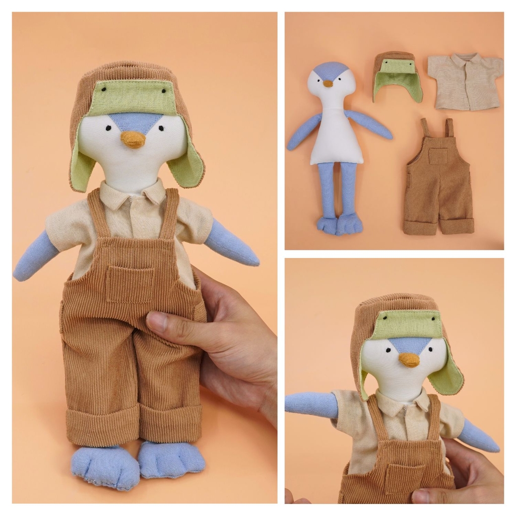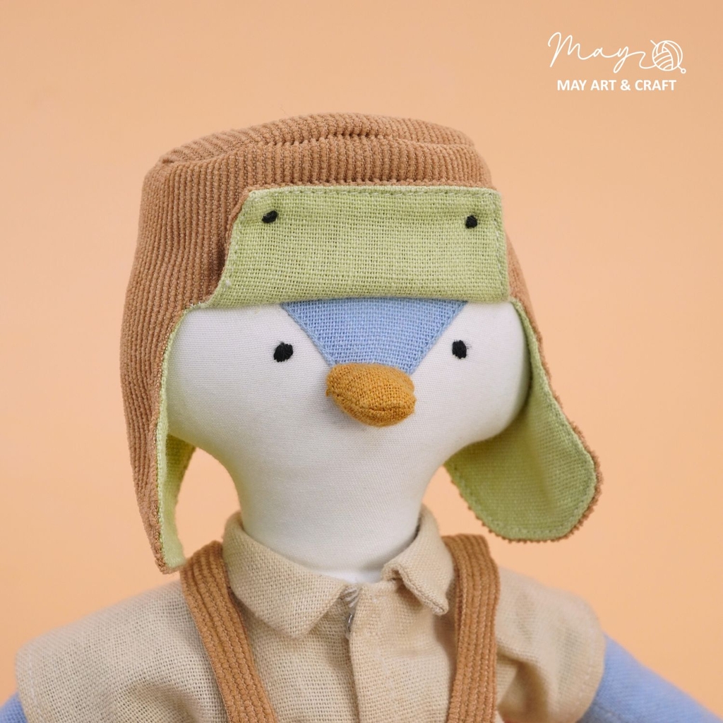 Sản phẩm nằm trong bộ sưu tập thú bông vải phối sẵn đồ của Tiệm tạp hoá nhà May. Phôi thú bông được may từ vải kaki cao cấp nhồi bông sợi không gây dị ứng, có kích thước khoảng 30cm, các trang phục và phụ kiện đi kèm được may vừa vặn với phôi.