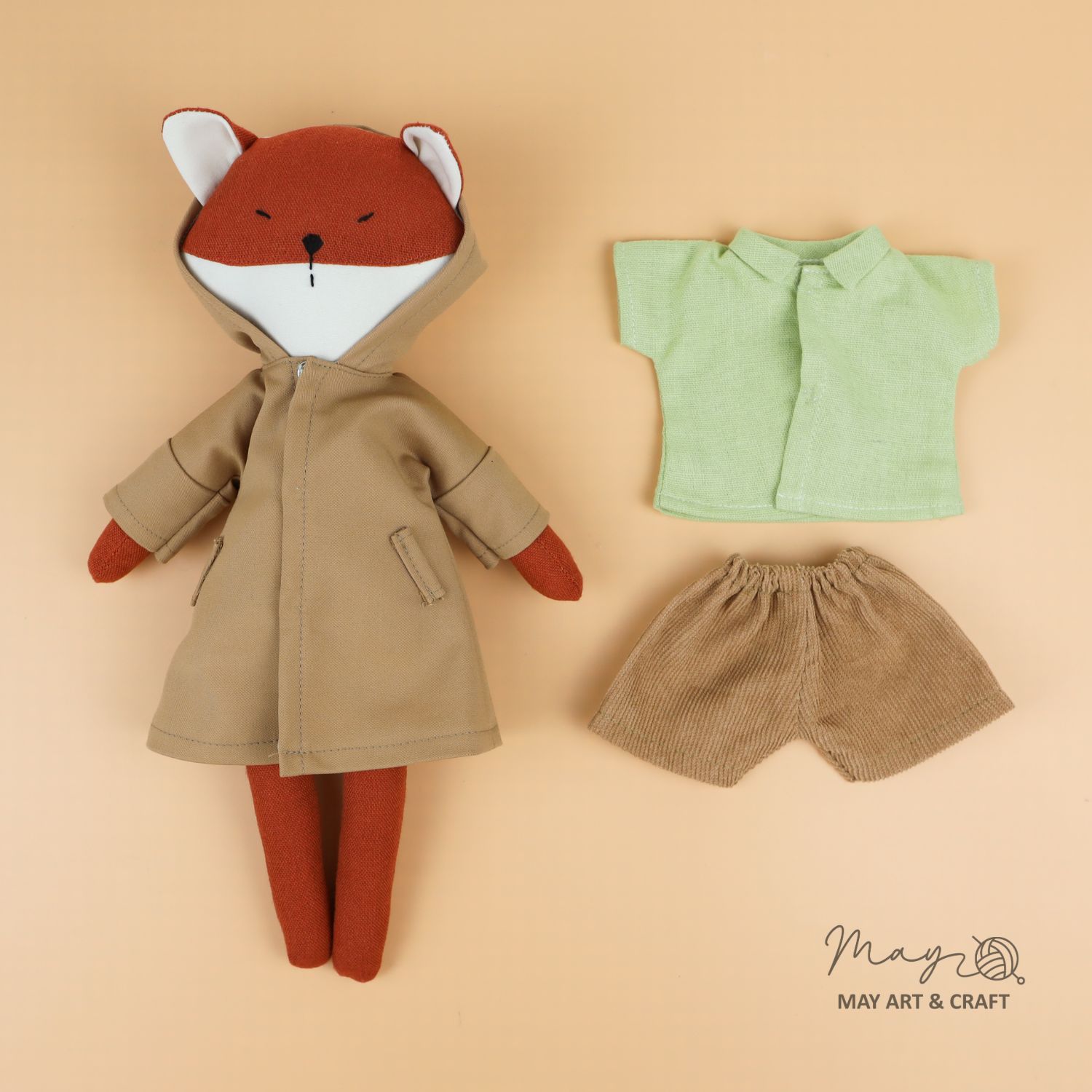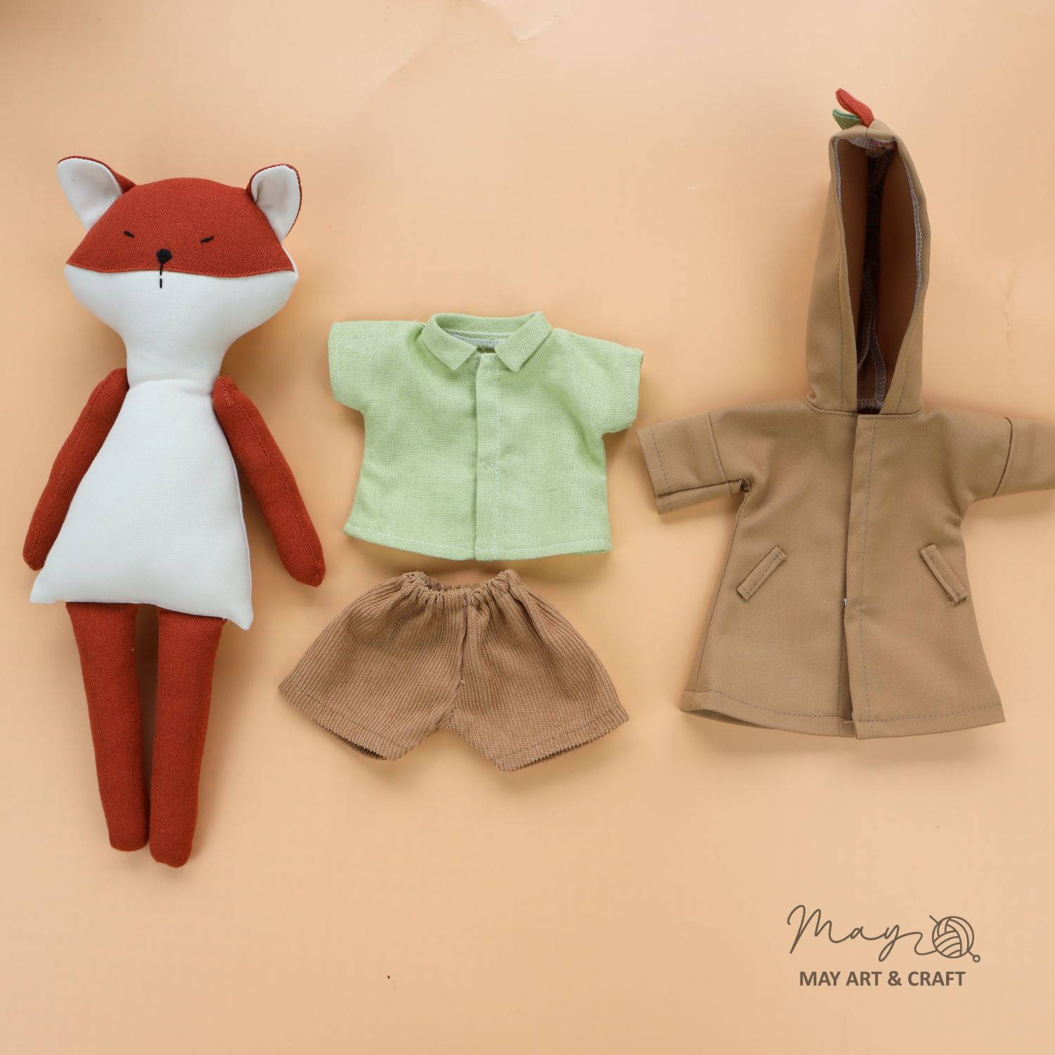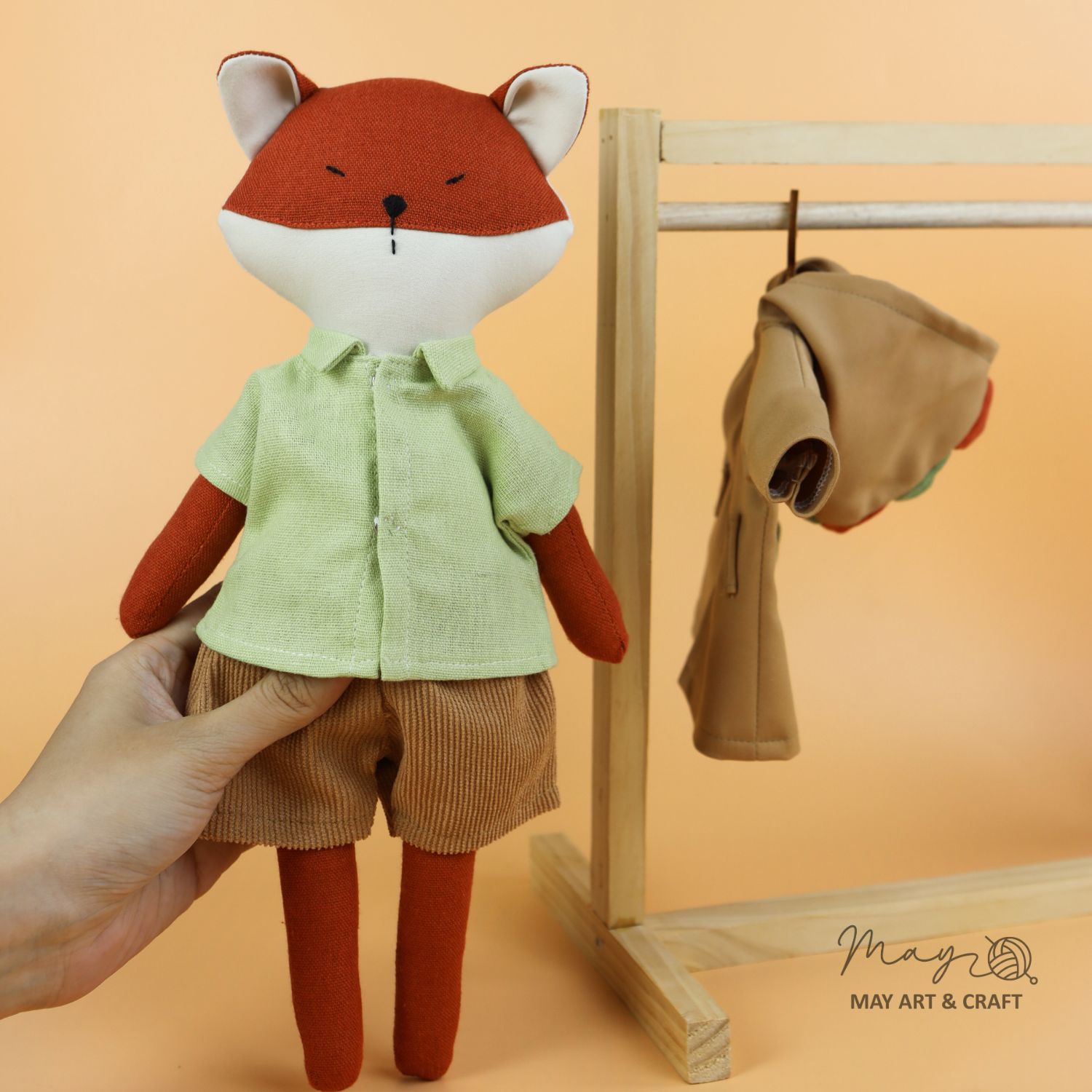 Sản phẩm nằm trong bộ sưu tập thú bông vải của Tiệm tạp hoá nhà May. Phôi thú bông được may từ vải kaki cao cấp nhồi bông sợi không gây dị ứng, có kích thước khoảng 30cm, các trang phục và phụ kiện đi kèm được may vừa vặn với phôi.