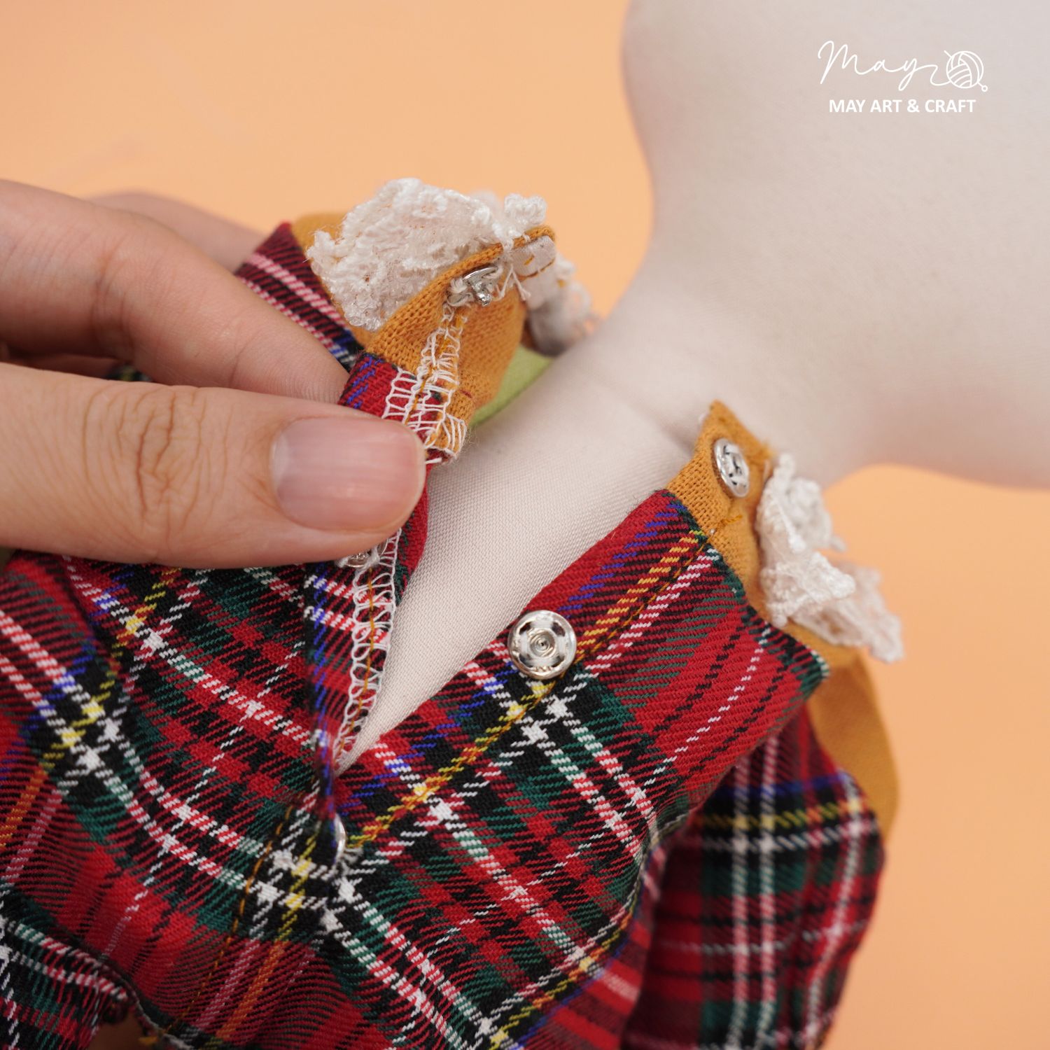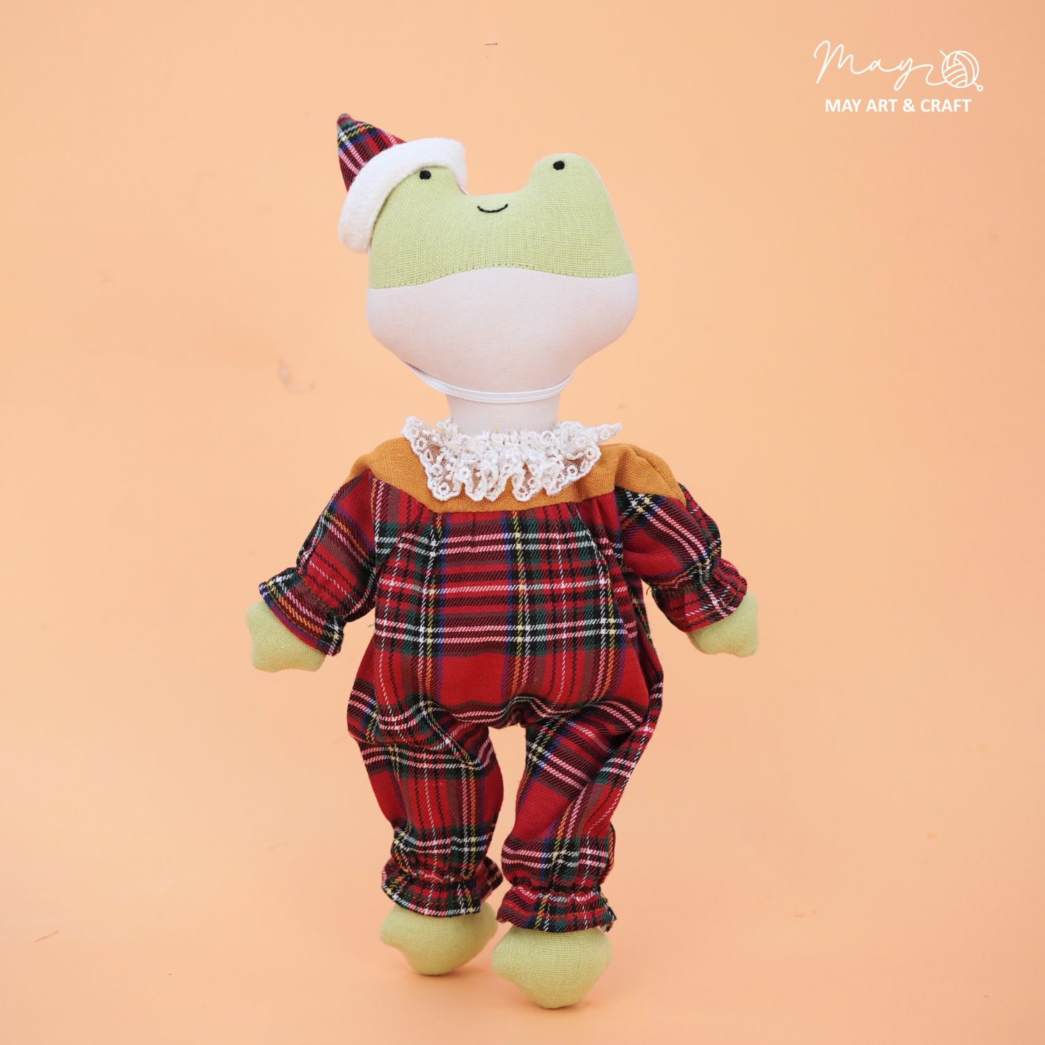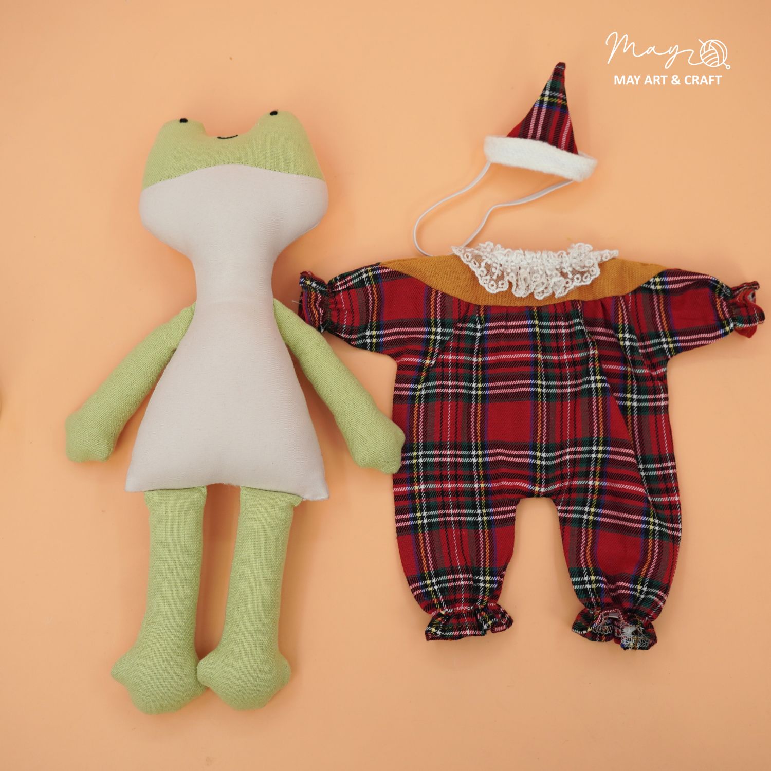Sản phẩm nằm trong bộ sưu tập thú bông vải phối sẵn đồ của Tiệm tạp hoá nhà May. Phôi thú bông được may từ vải kaki cao cấp nhồi bông sợi không gây dị ứng, có kích thước khoảng 30cm, các trang phục và phụ kiện đi kèm được may vừa vặn với phôi.
