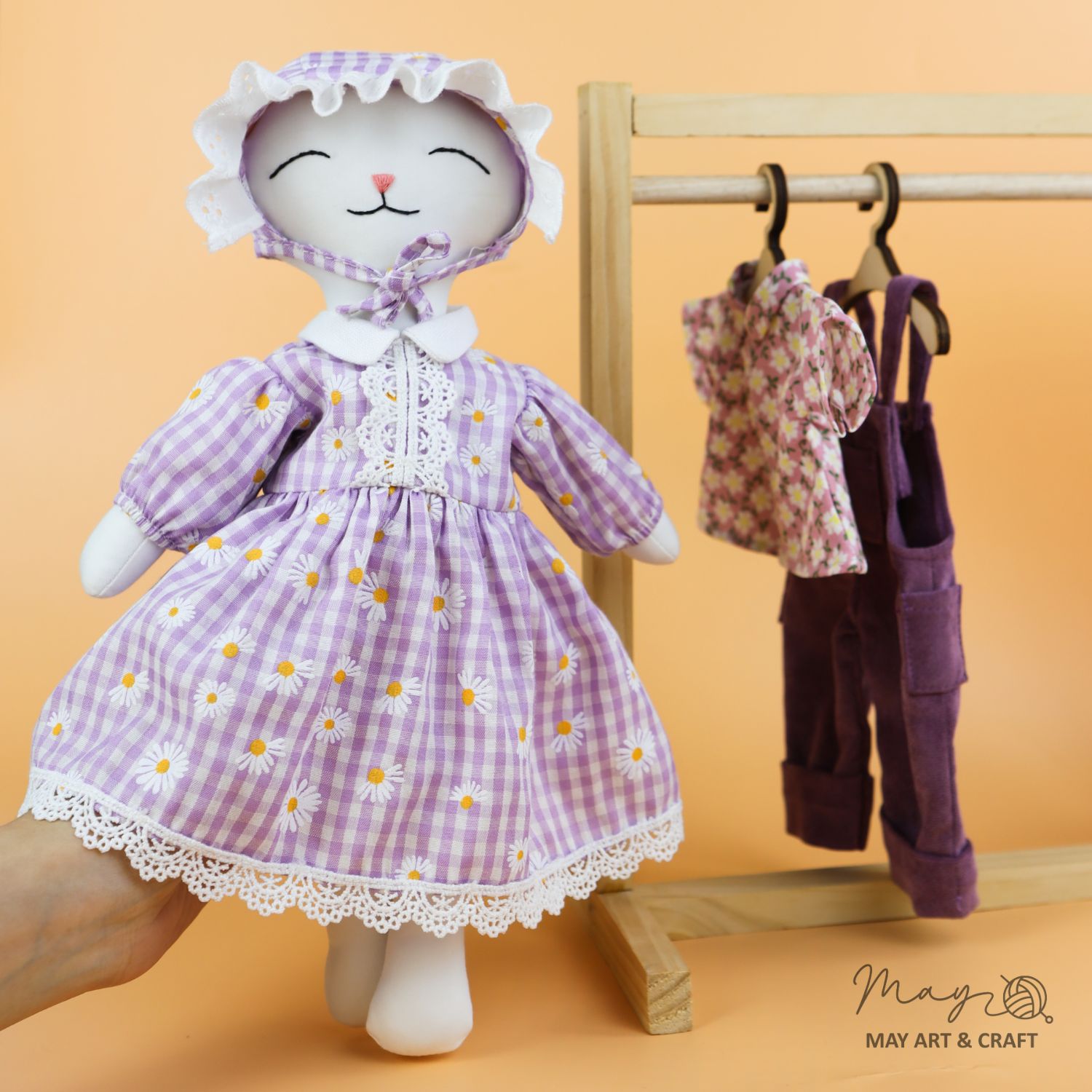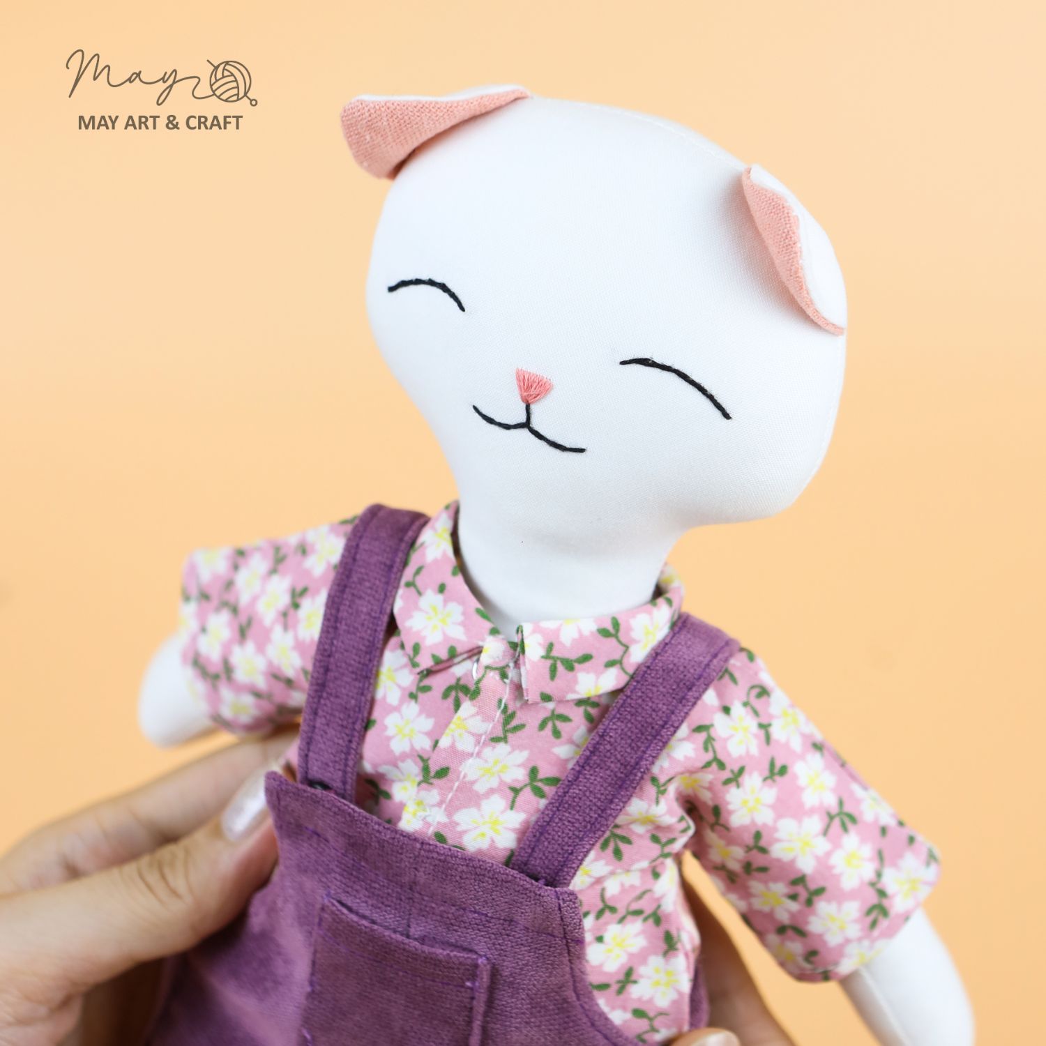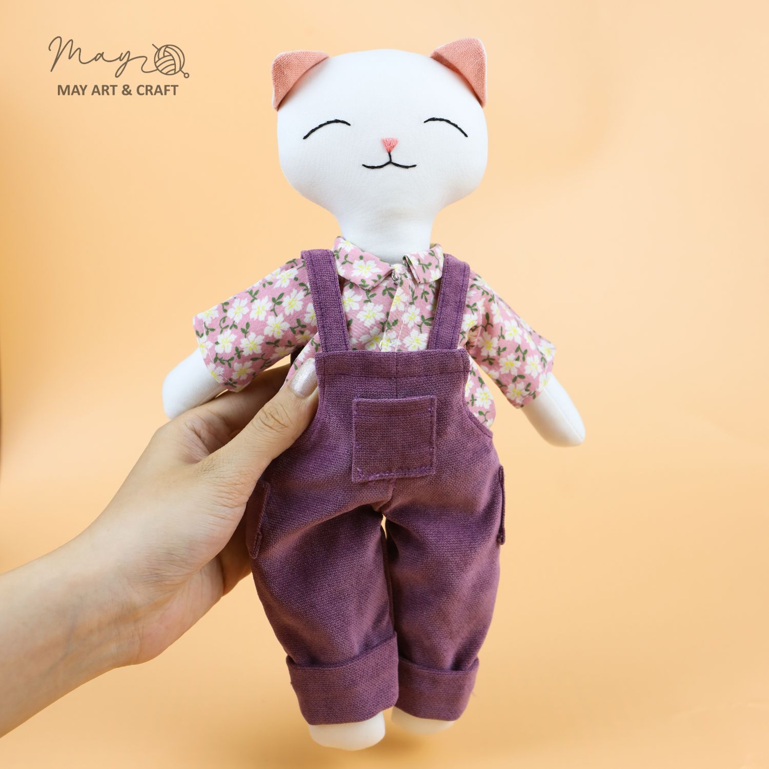 Sản phẩm nằm trong bộ sưu tập thú bông vải của Tiệm tạp hoá nhà May. Phôi thú bông được may từ vải kaki cao cấp nhồi bông sợi không gây dị ứng, có kích thước khoảng 30cm, các trang phục và phụ kiện đi kèm được may vừa vặn với phôi.
