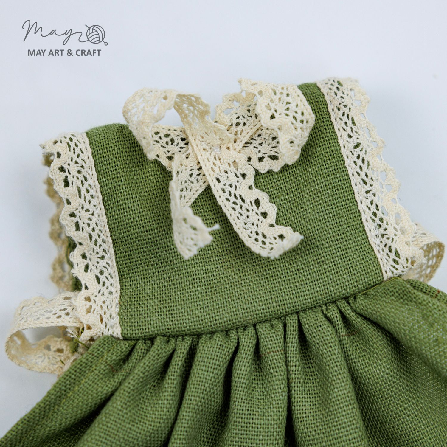 Sản phẩm nằm trong bộ sưu tập thú bông vải của Tiệm tạp hoá nhà May. Phôi thú bông được may từ vải kaki cao cấp nhồi bông sợi không gây dị ứng, có kích thước khoảng 30cm, trang phục phụ kiện được may bằng vải linen/vải thô với thiết kế độc đáo, có cúc bấm đính tay, vừa vặn với phôi.