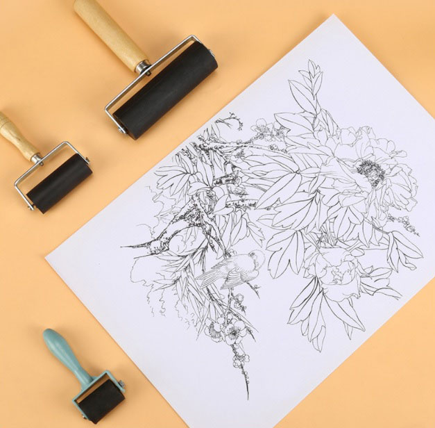Con lăn cao su có cán bằng gỗ, kết cấu đơn giản, linh hoạt, chắc chắn, ứng dụng để lăn màu trong hội họa, làm đồ thủ công...