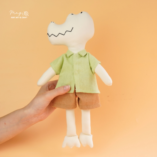Phôi cá sấu nằm trong bộ sưu tập phôi thú bông vải - dòng sản phẩm mới của Tiệm tạp hoá nhà May. Phôi thú bông được may từ vải kaki cao cấp, có kích thước khoảng 30cm, phù hợp với các loại trang phục phụ kiện thú bông khác của Tiệm.