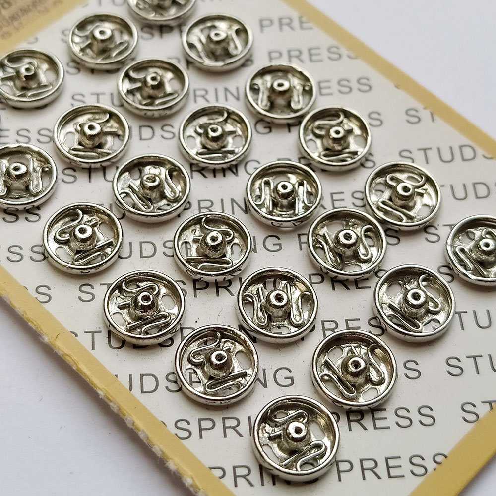 Cúc bấm kim loại màu bạc đường kính 7 cm, dùng làm khuy bấm trên quần áo, túi xách, phụ kiện...