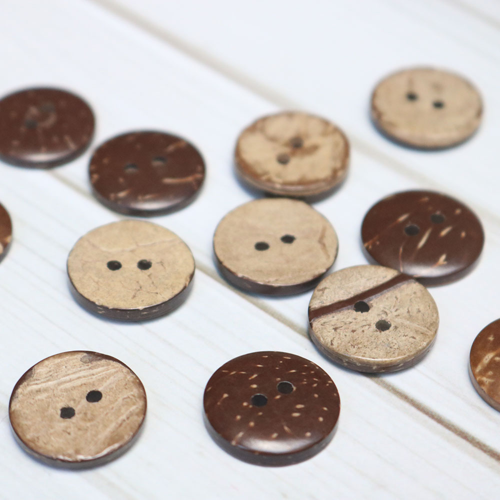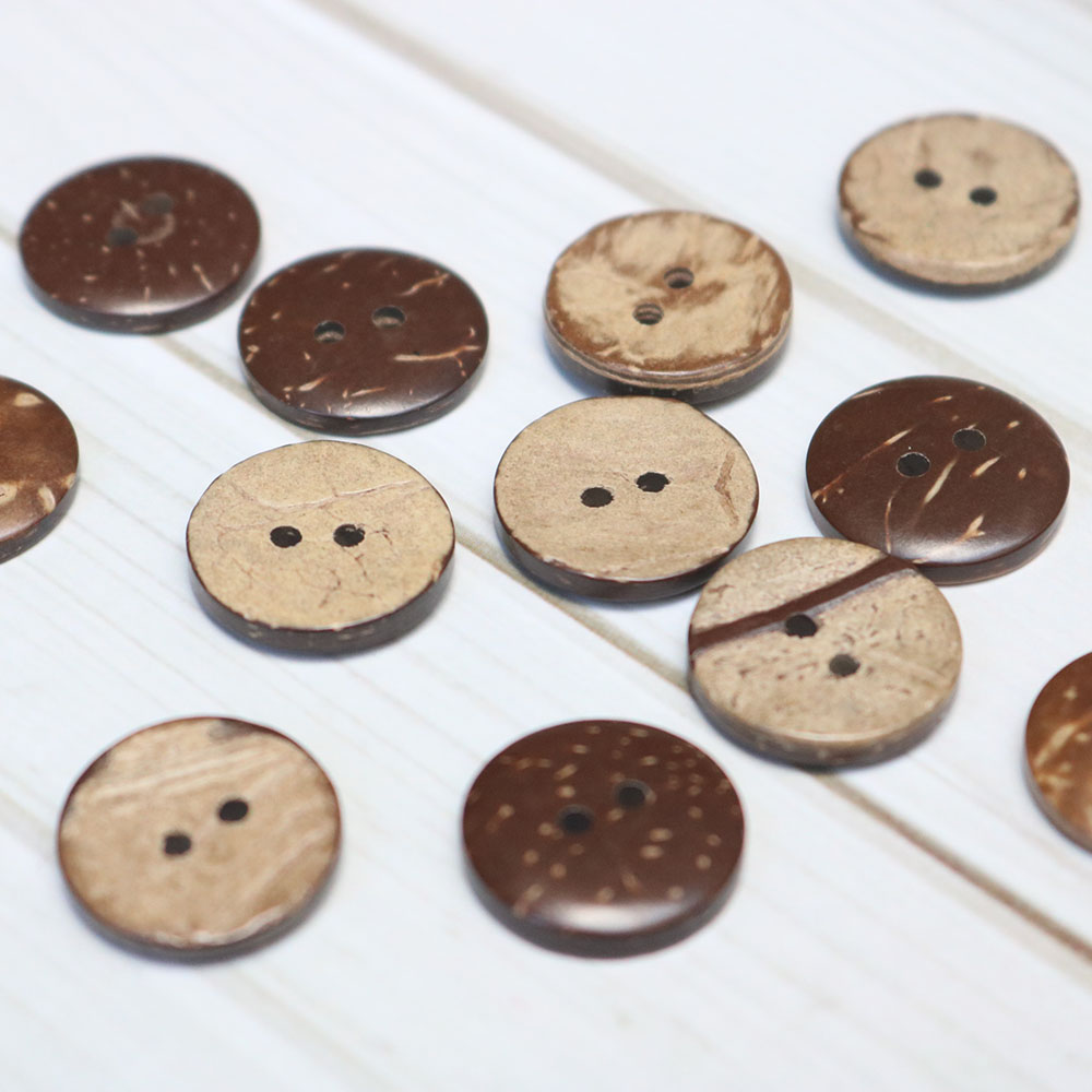 Cúc gỗ dừa được làm từ gáo dừa, đường kính 17mm màu nâu gỗ vintage.