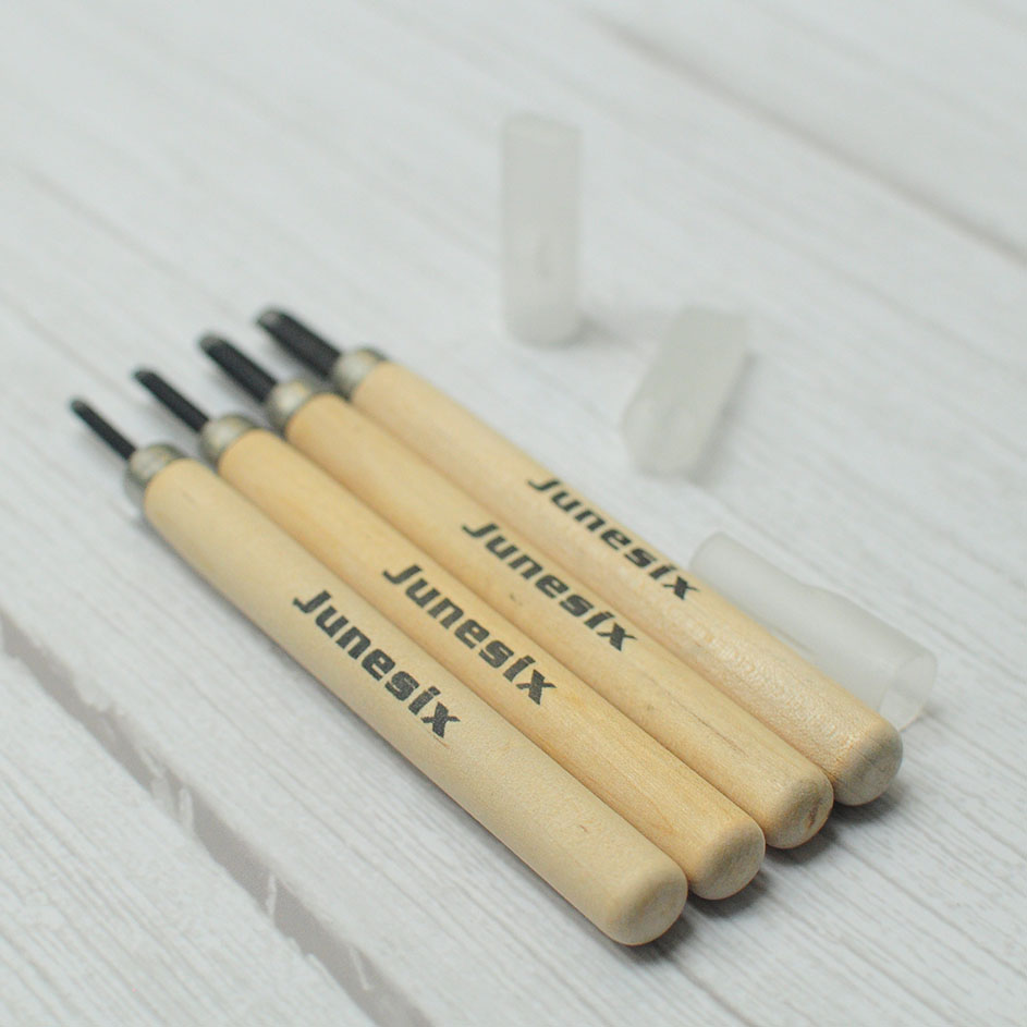 Dao khắc cao su cán gỗ, ứng dụng trong bộ môn khắc cao su block printing. Cán dao bằng gỗ chắc chắn, kèm hộp đựng vuông vắn, gọn gàng.