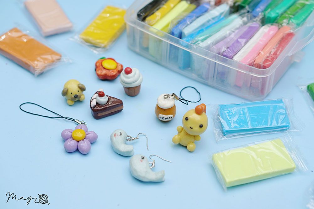 Đất sét polymer clay loại mềm nhiều màu, ứng dụng để tạo hình thành các sản phẩm như pin cài áo, móc khóa, charm vòng...