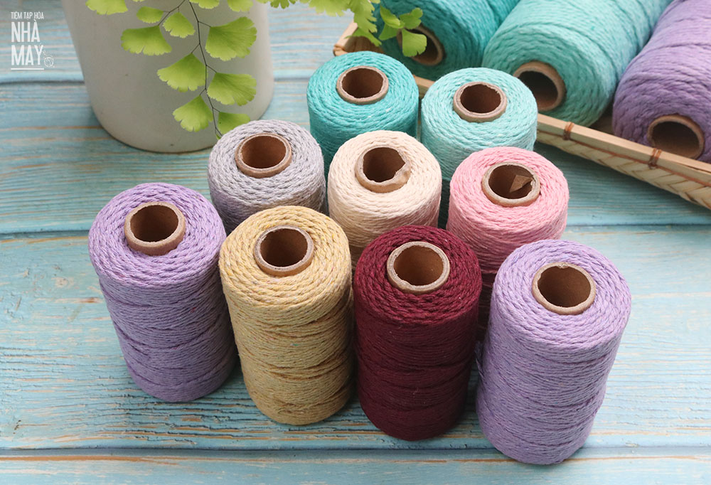 Dây thừng dày 2mm, kết cấu dạng xoắn 2 sợi, chất liệu cotton nhiều màu sắc. Mỗi cuộn dây dài 100m