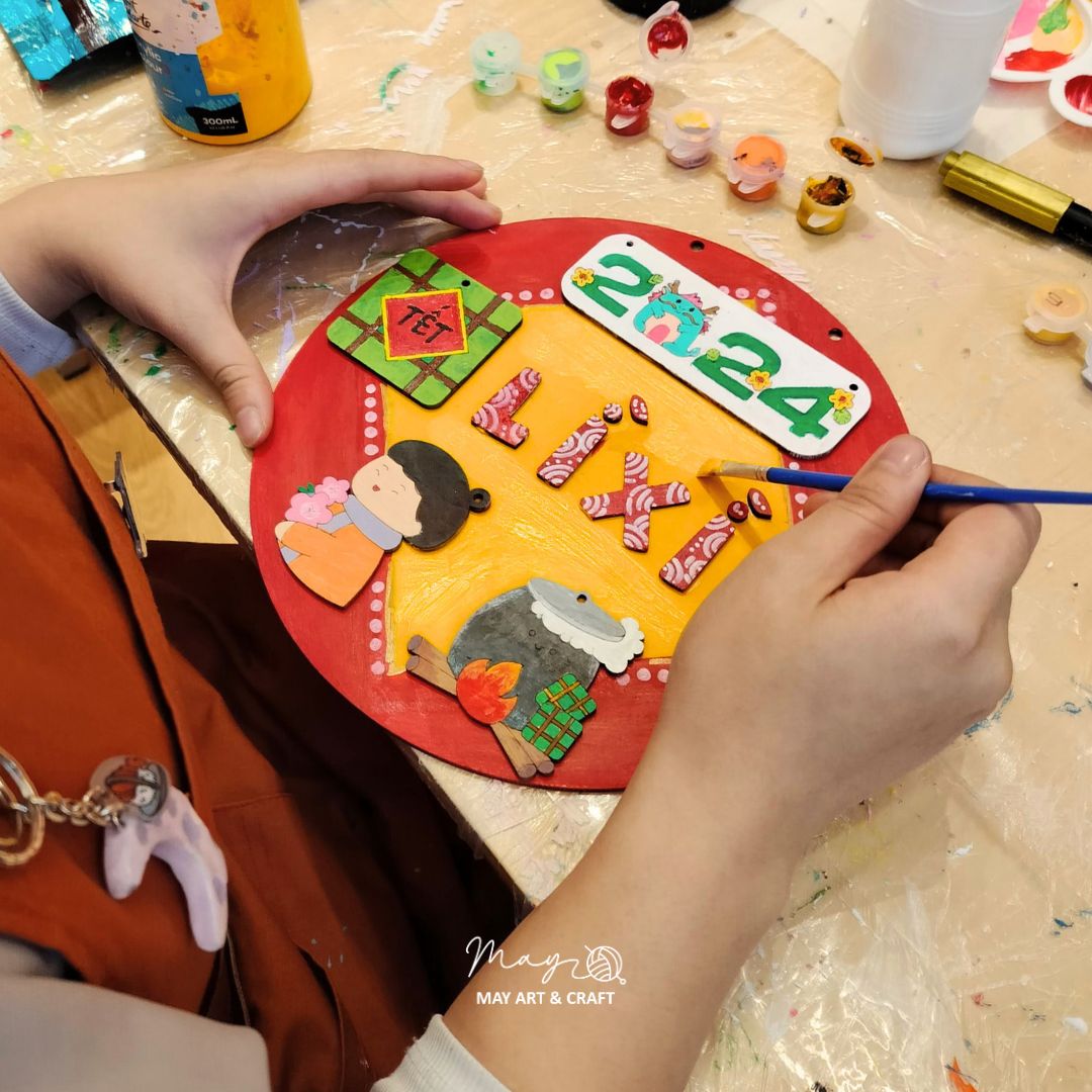 Workshop tô màu bảng gỗ với các hình gỗ chủ đề Tết con Rồng