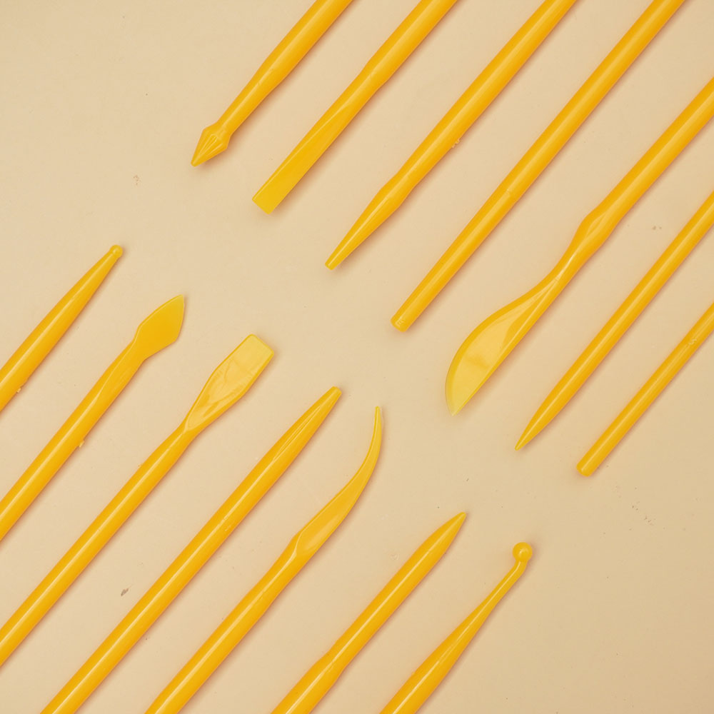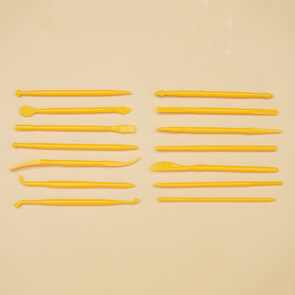 Bộ dụng cụ tạo hình bằng nhựa 14 món, mỗi dụng cụ có 2 đầu, dùng để hỗ trợ trong quá trình làm sản phẩm từ đất sét.