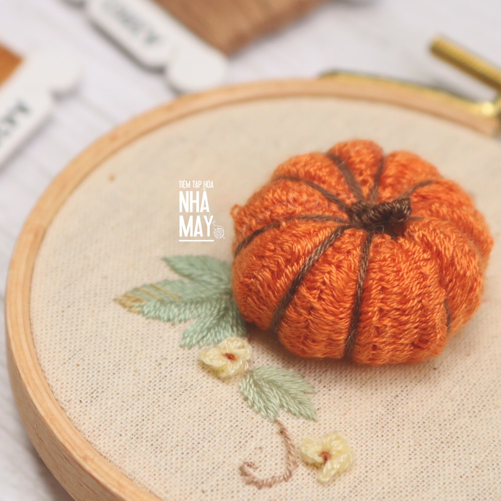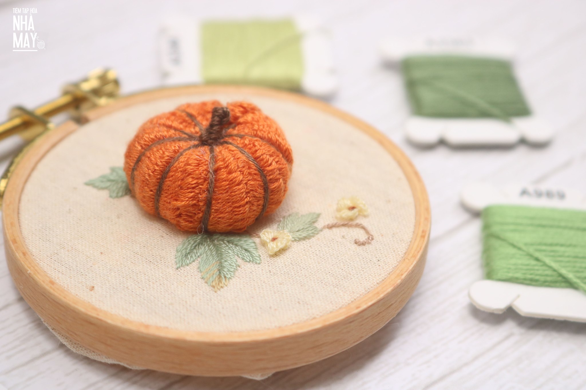 Dùng mũi thêu nổi để tạo hình quả bí đỏ 3D như thật (có mẫu in)