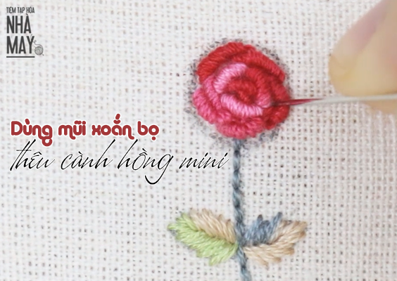 Dùng mũi xoắn bọ thêu một cành hồng mini