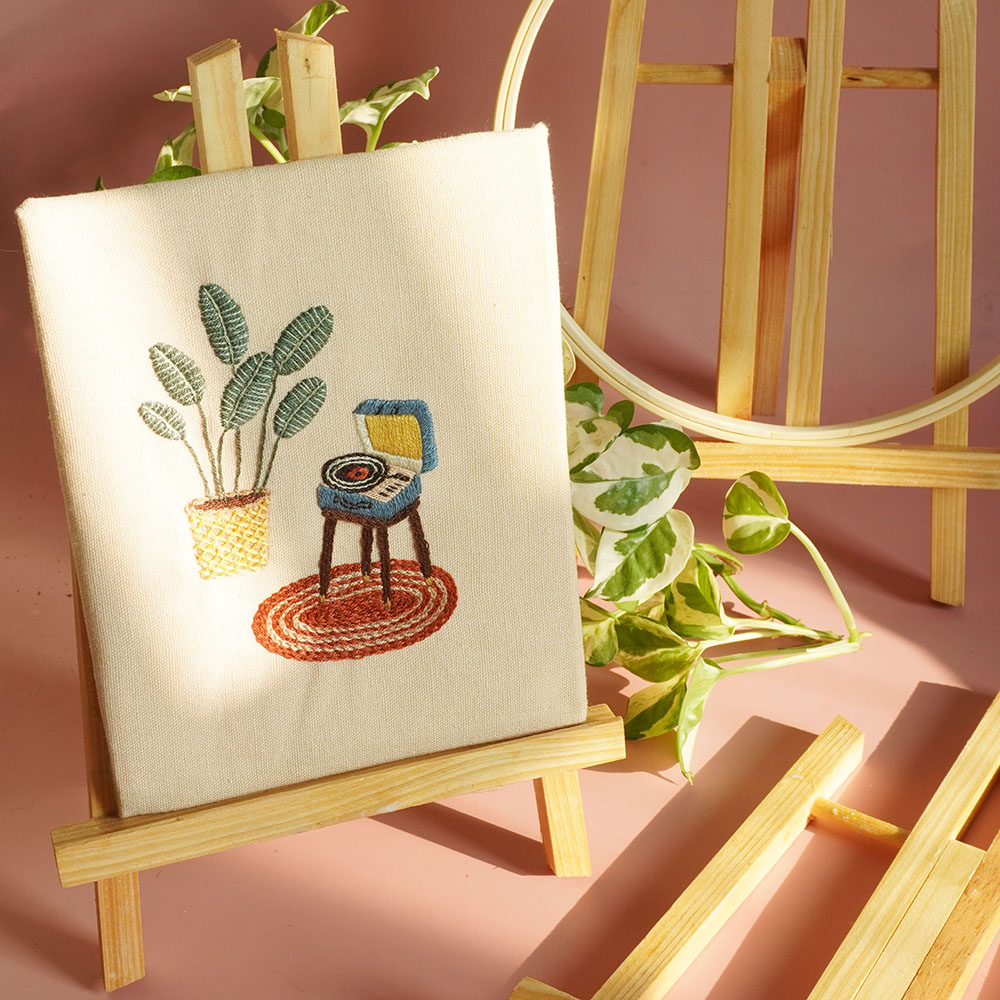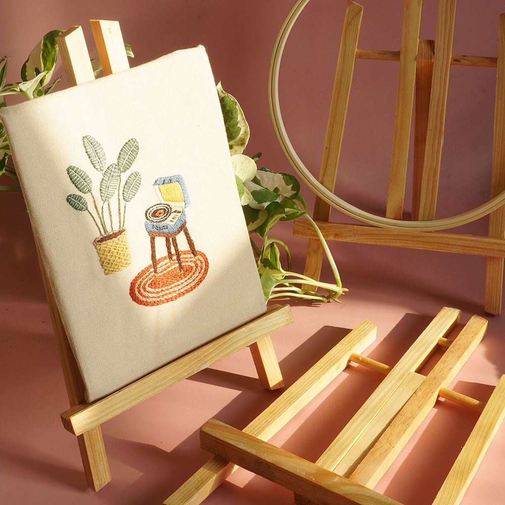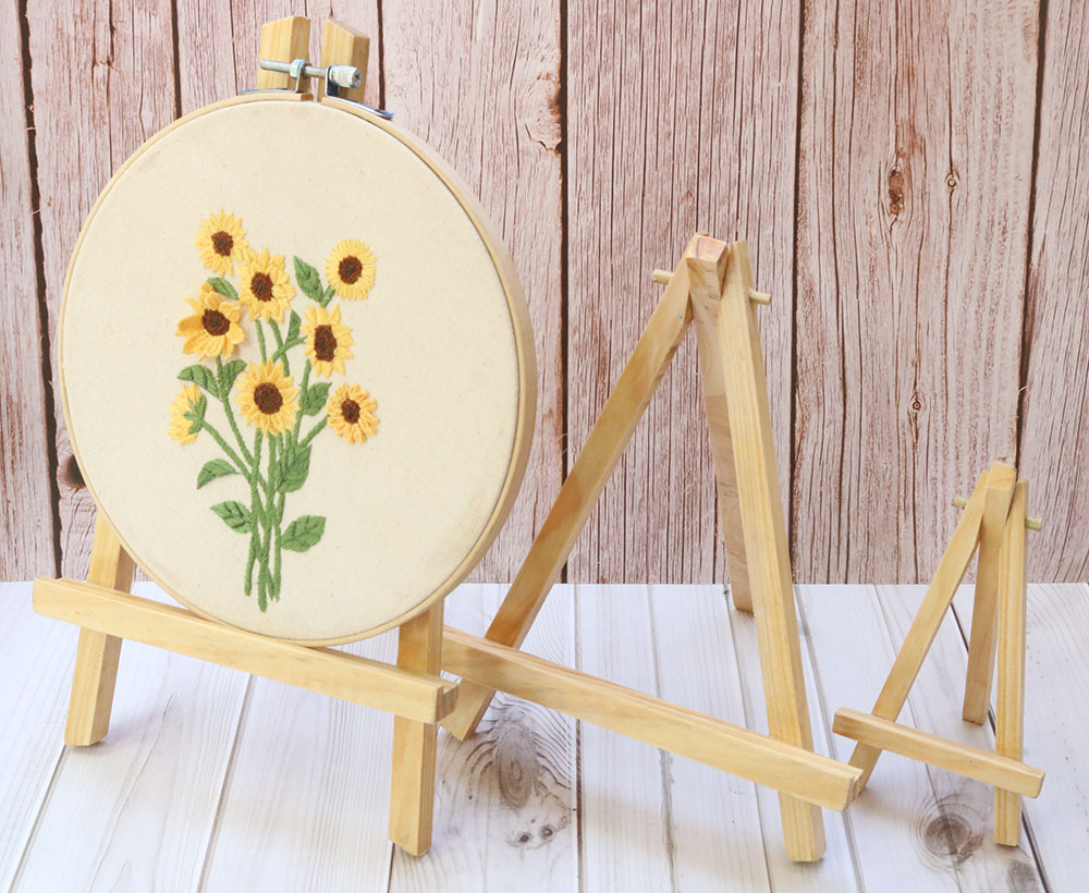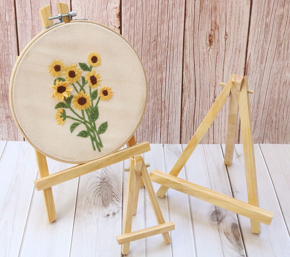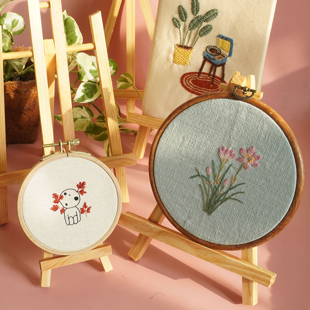Lưu ý khi đặt khung thêu trang trí: bạn nên sử dụng loại khung có thể đặt vừa vặn trên giá gỗ hoặc nhỏ hơn một chút. Nếu dùng loại khung to hơn, đầu phía trên của giá gỗ sẽ chọc vào vải thêu khiến hình thêu bị méo mó, không đẹp.