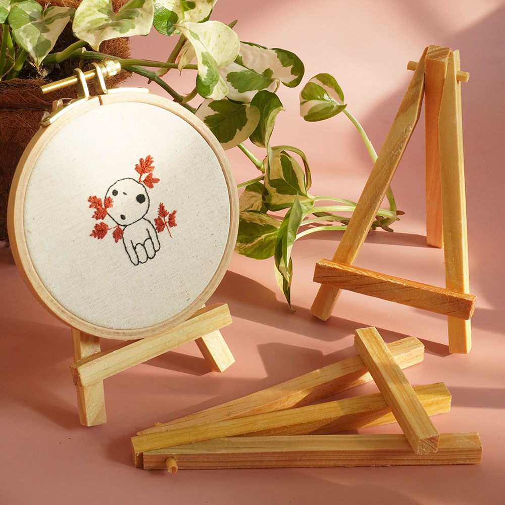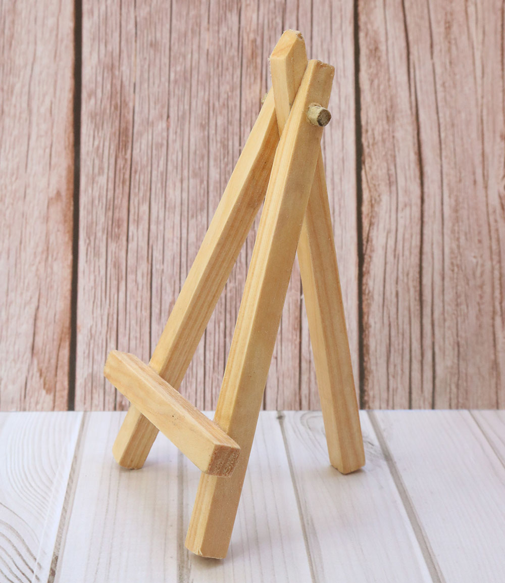 Giá đỡ bằng gỗ chắc chắn, vuông vức, có chân phía sau. Giá gỗ dùng để trang trí, có thể để ảnh hoặc khung thêu.