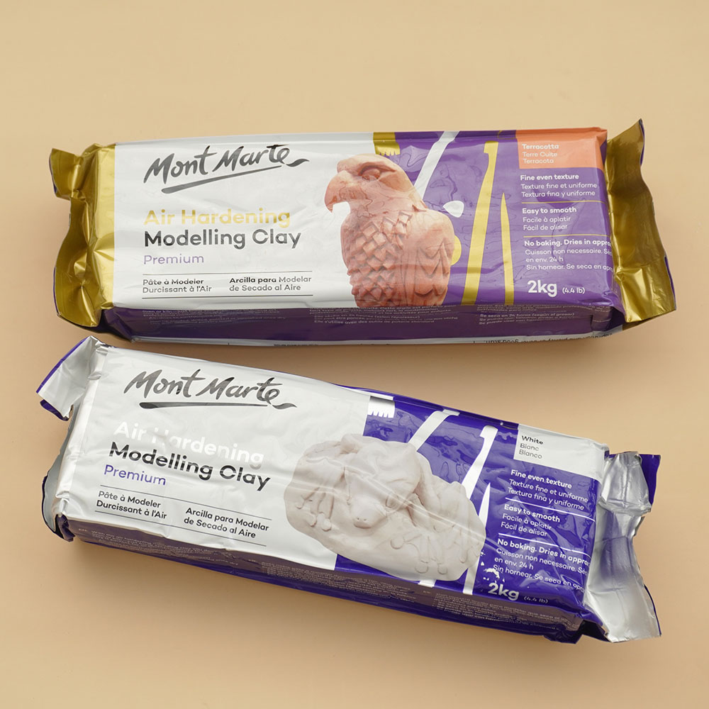 Đất sét tự khô hãng Mont Marte dùng để nặn tạo hình các sản phẩm đất sét như khay, pin cài áo, móc khóa, mô hình...