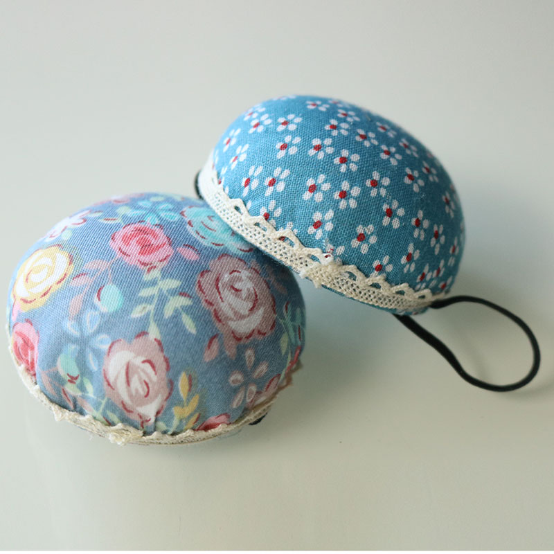 Gối cắm kim đế gỗ, đường kính 6cm, cao 3cm, chất vải cotton mềm xốp, phần lõi được nhồi bông chặt/ hoặc mút xốp, giúp dễ dàng cắm kim, dây chun đeo tay chắc chắn, thuận tiện trong quá trình thêu thùa, may vá.