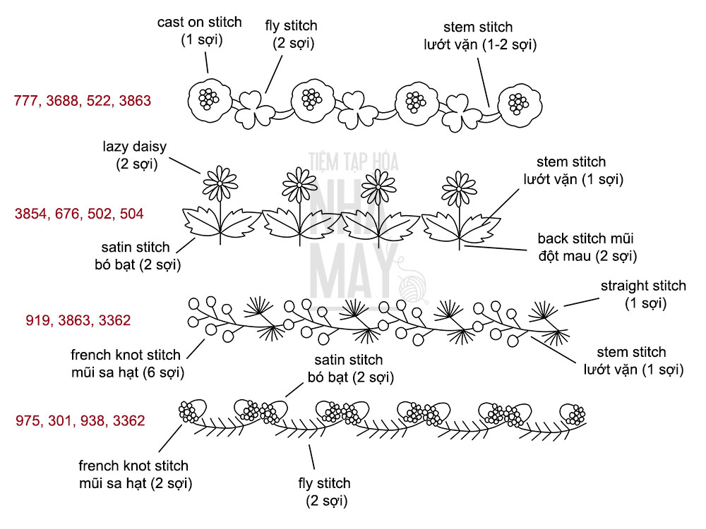 - Kim thêu: bạn xem các loại kim thêu tại đây nhé https://tiemtaphoanhamay.vn/kim-theu