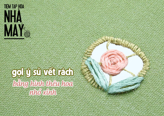 Nếu không muốn đắp vải lên và thêu kín vết rách, Tiệm gợi ý cho mọi người một kiểu thêu khá xinh xắn, biến vết rách thành bông hoa cách điệu. Các chị em thử xem nha!